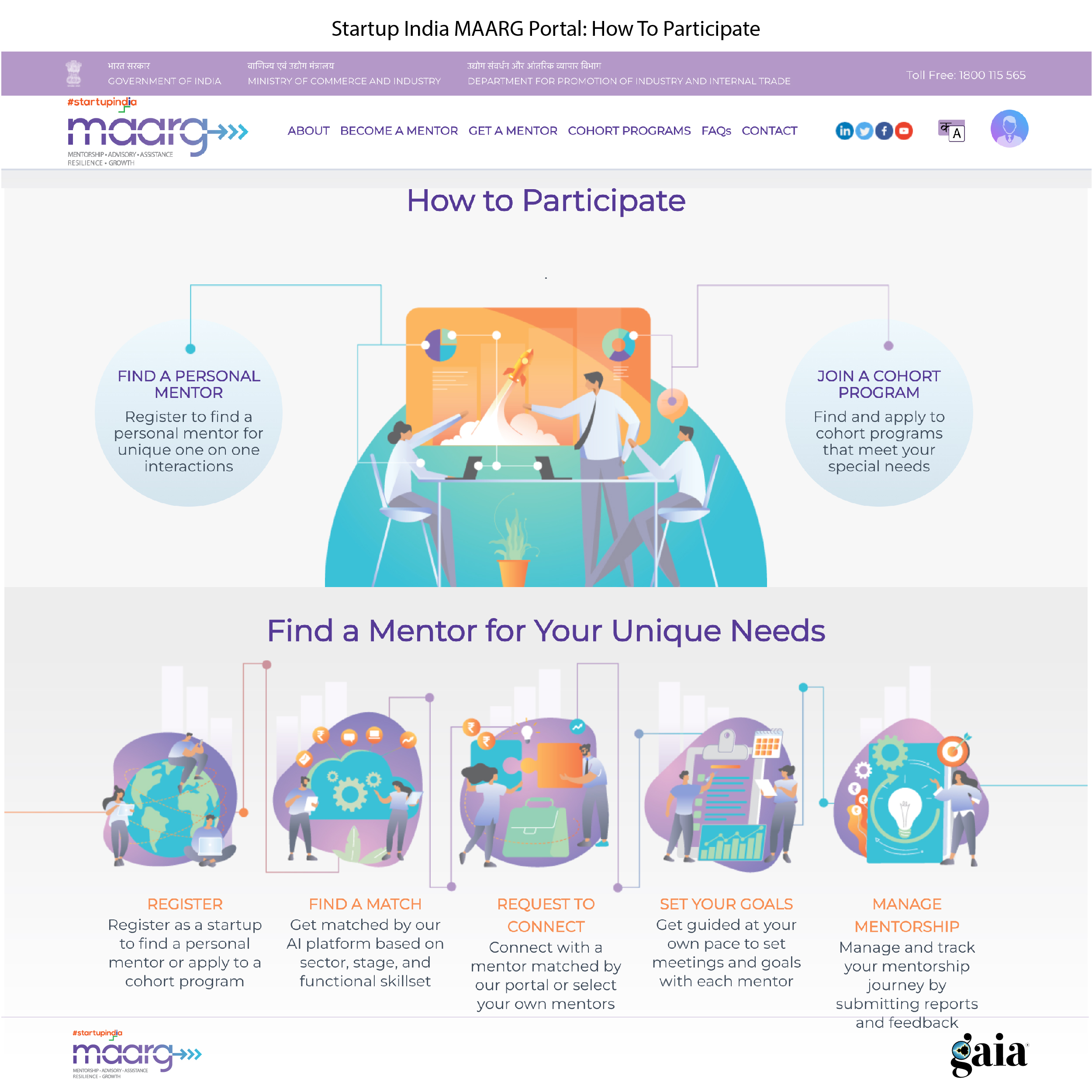 MAARG portal (Mentorship, Advisory, Assistance, Resilience and Growth) is a one-stop platform to facilitate mentorship for start-ups across diverse sectors, functions, stages, geographies, and backgrounds.