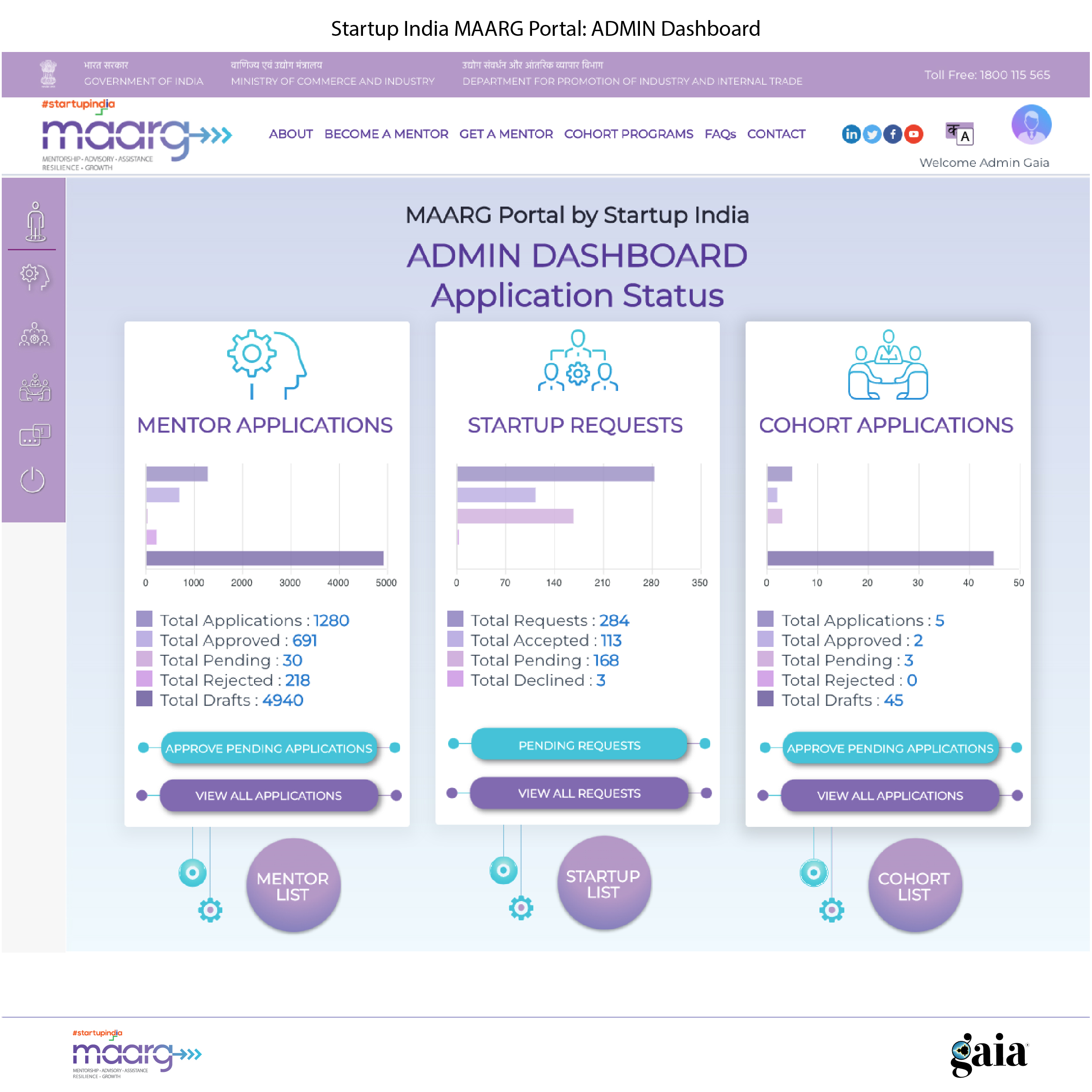 Image Credit : All images have been taken from design files and actual system designed, developed and maintained by the team at Gaia. All intellectual property for the site resides with Start Up India, Ministry of Commerce and Industry, Government of India.