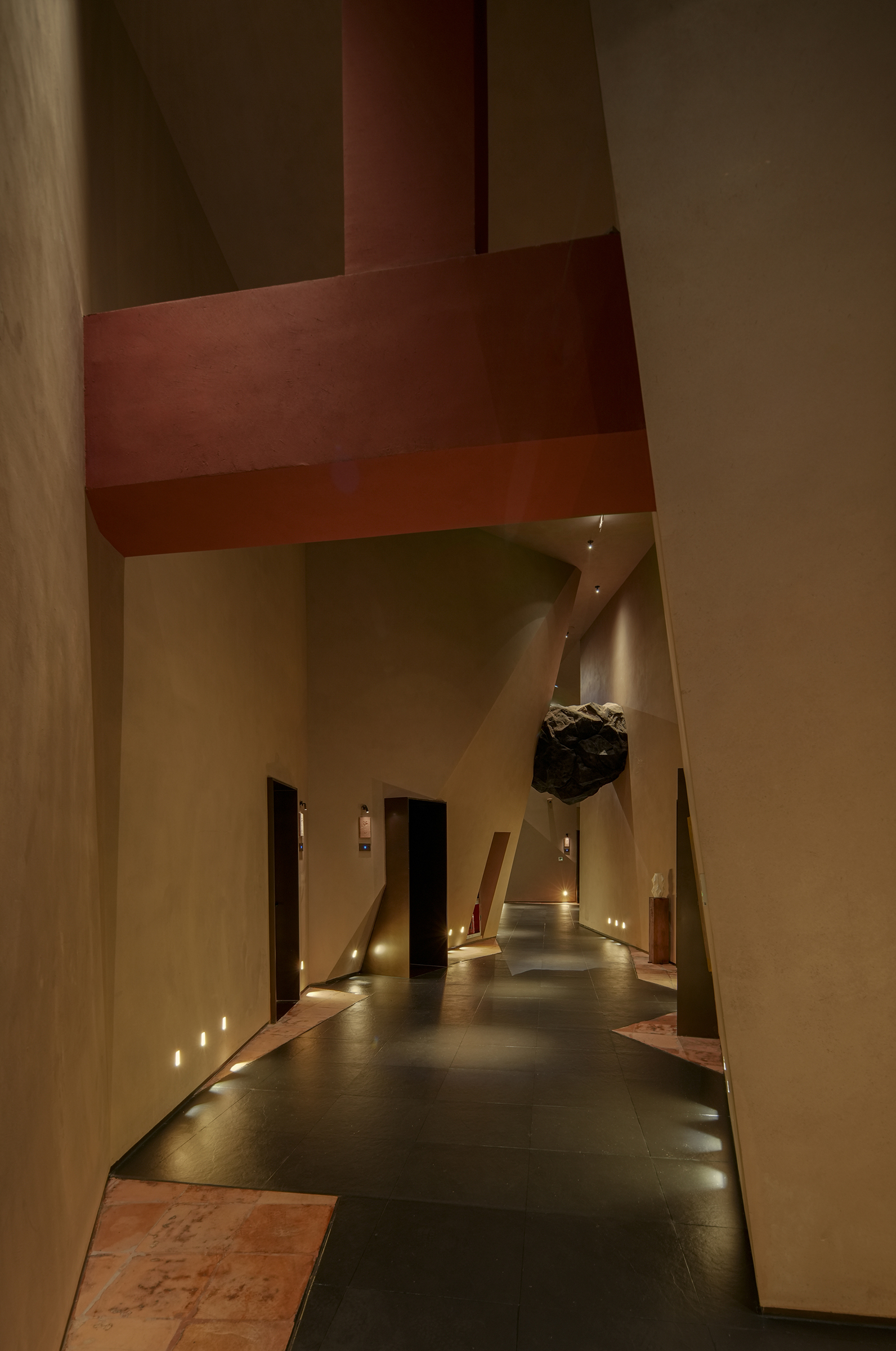 A key focus of this spatial design is how to pay homage to the Big Wild Goose Pagoda, a world-renowned stupa. By integrating natural elements throughout all spaces, the design aims to reflect the essence of the original Tang-style architecture. The existing tall spaces and double-sloped roof provide the perfect canvas for establishing a new spatial order, where the dialogue and interplay between the old and the new evoke a tension and an undefined style.