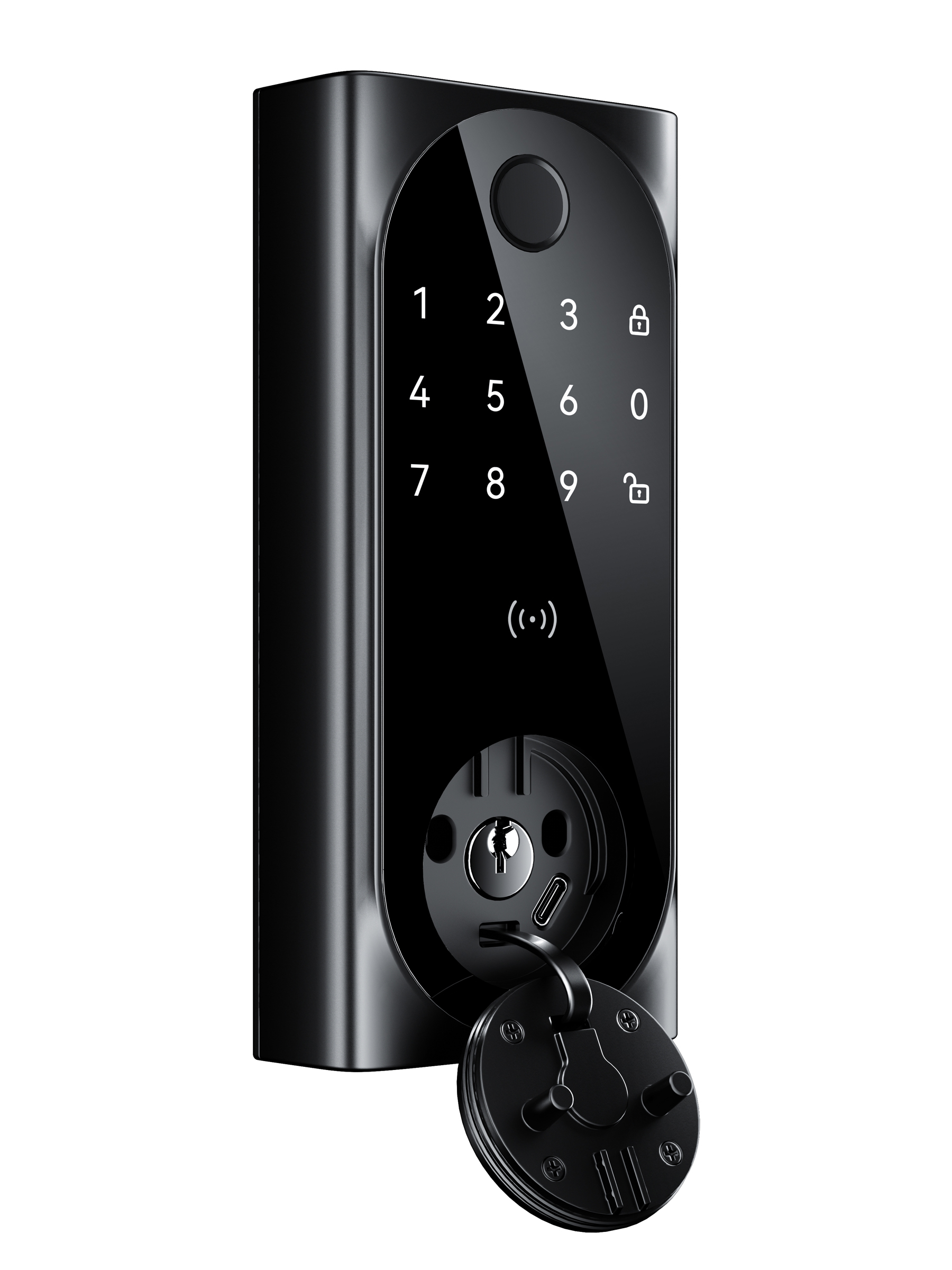 A major challenge lies in ensuring that the HomeKit Smart Door Lock blends seamlessly into ever-changing home interior styles rather than standing out as an out-of-place “tech gadget.” The design draws inspiration from a circular track, blending straight lines with gentle curves to balance a sense of order with flowing elegance. It features a low-saturation obsidian black metallic finish and user-friendly soft light, conveying a stable and premium visual impression. The lock, with a minimalist yet neutral aesthetic, seamlessly blends into a variety of home interiors and elevates the overall style of the space.