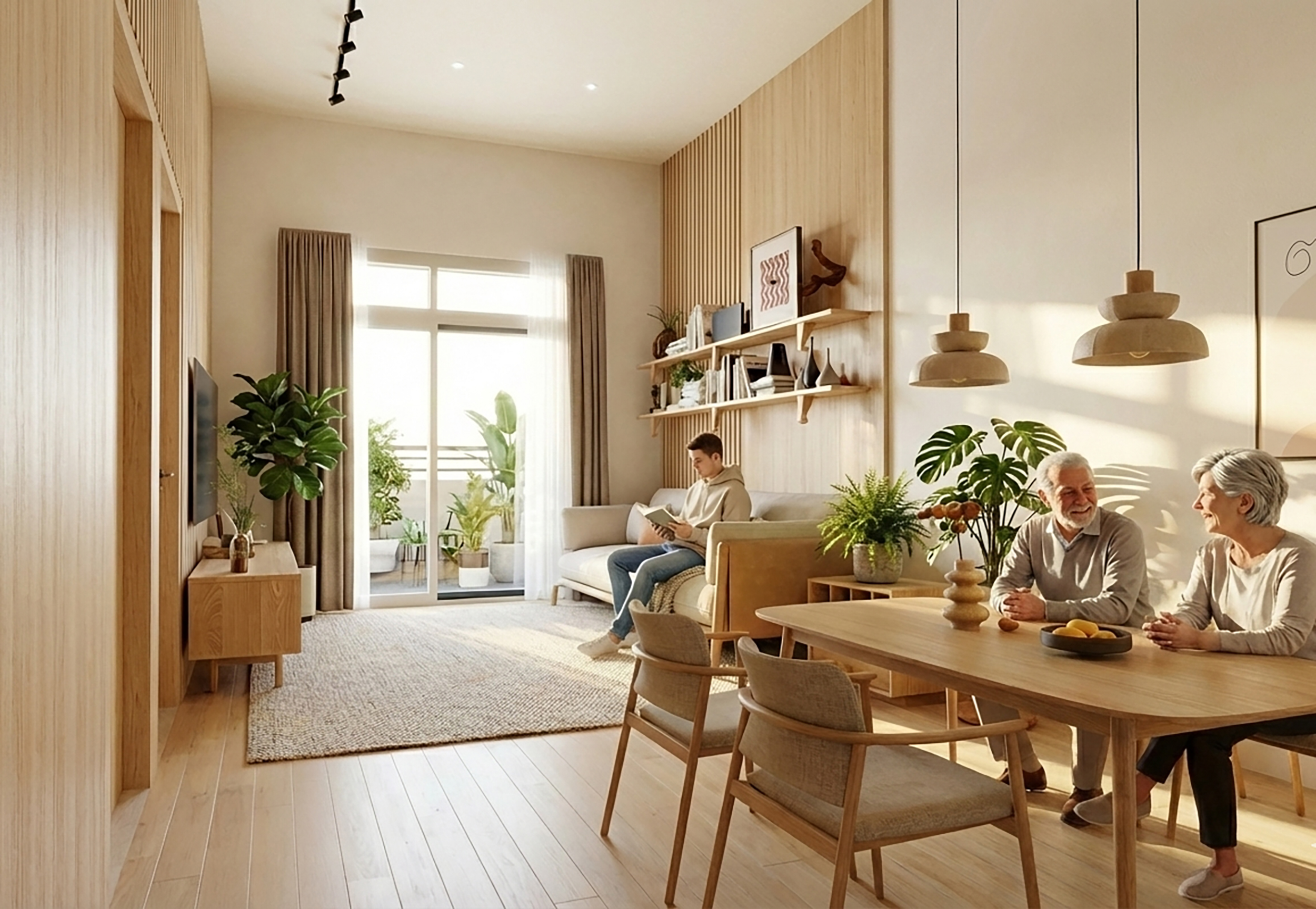 The architectural massing adopts a north-south orientation, featuring two towers bridged by a fourth-level sky garden. A porous ground-level lobby fosters seamless transitions between landscaped plazas, creating an inviting public realm that channels natural ventilation. Programmatically, the podium serves as a community nexus, housing retail and 6,600 sqm of social welfare infrastructure—including intergenerational care and co-working spaces. Above, 606 residential units are engineered for post-pandemic resilience, incorporating vertical greenery, passive solar design, and independent exhaust systems. Segregated circulation cores ensure privacy, synthesizing a holistic, inclusive ecosystem for all demographic strata.