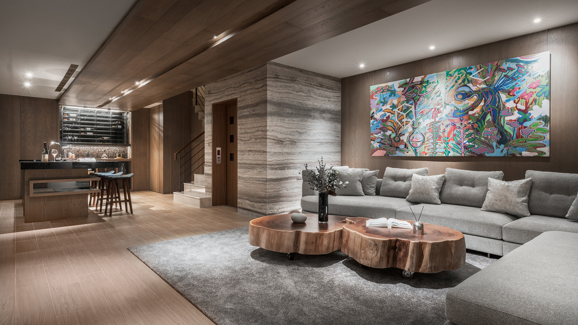 This design embraces minimalism and neat style with a touch of unique perpetuity. Simple and genuine fundamental selections brought luxurious elegance into residents' living experiences. The hues include classic black, white and gray, along with milky brown colors, almond and natural wooden colors, presenting a grand yet elegant ambiance in this space. Visually, balance and unity is cultivated so that a gallery-like atmosphere carries subtle artistic feel under the modern style selections. This design emphasizes on humanity and turns life into an impressive art painting.