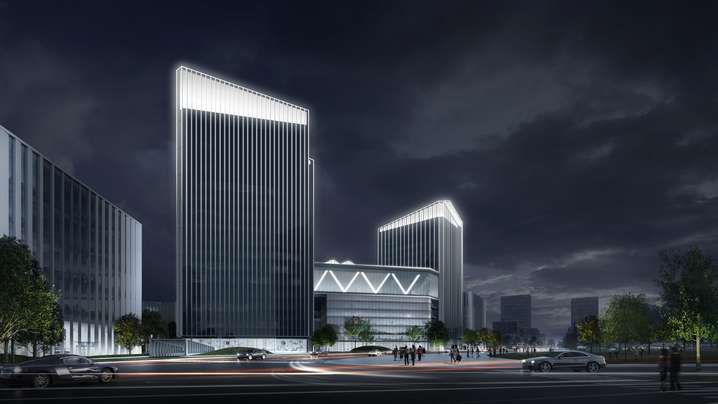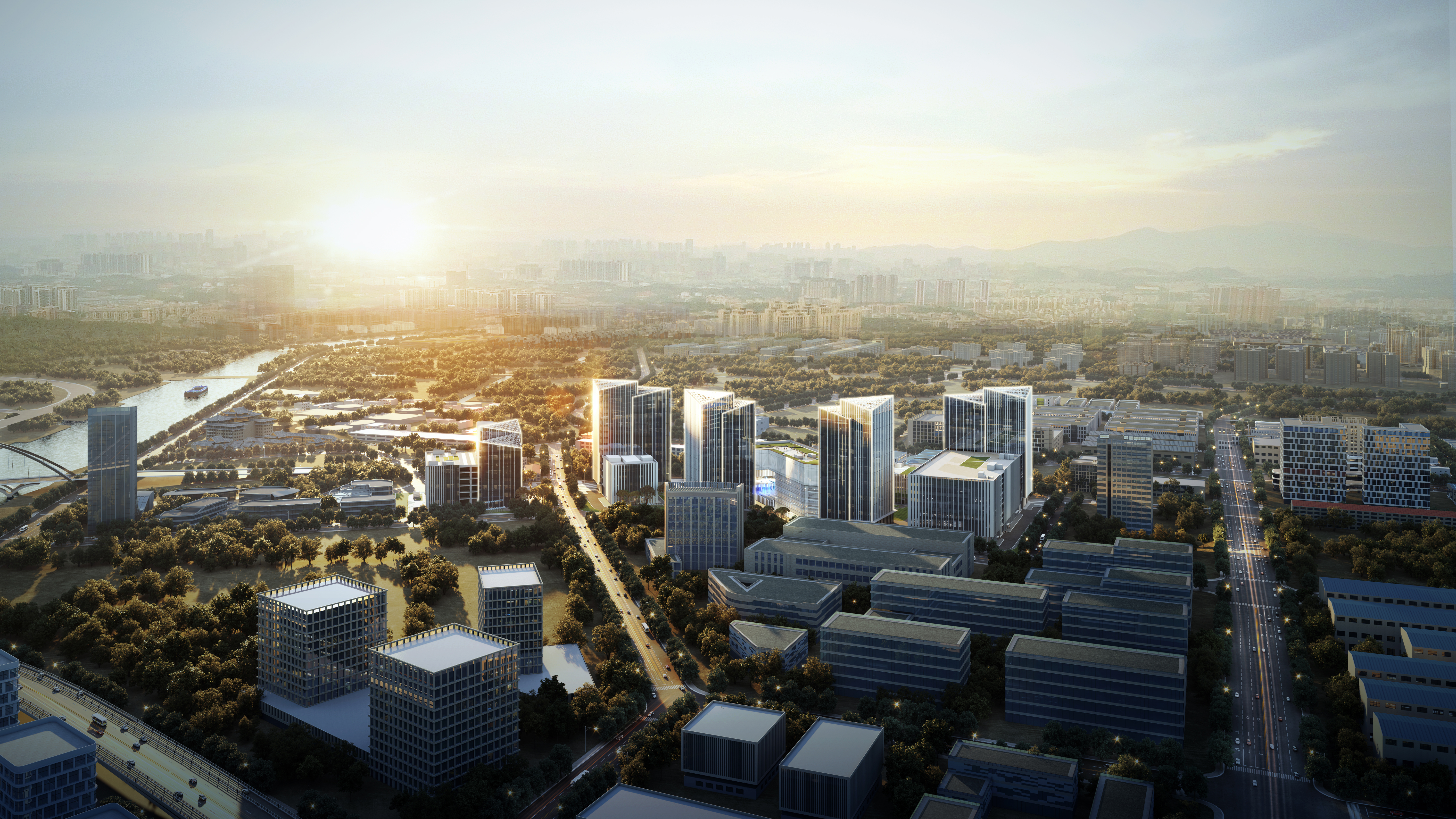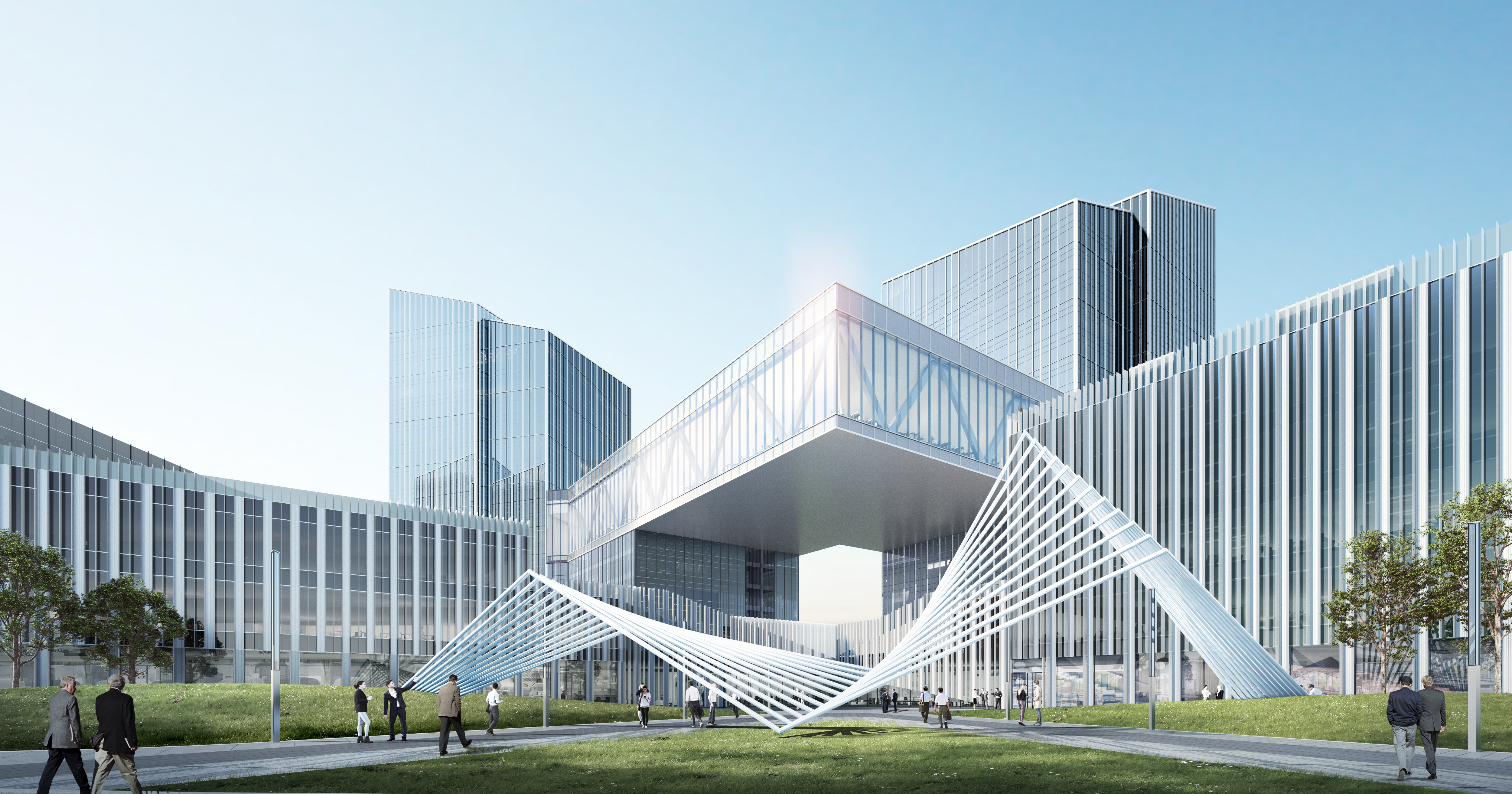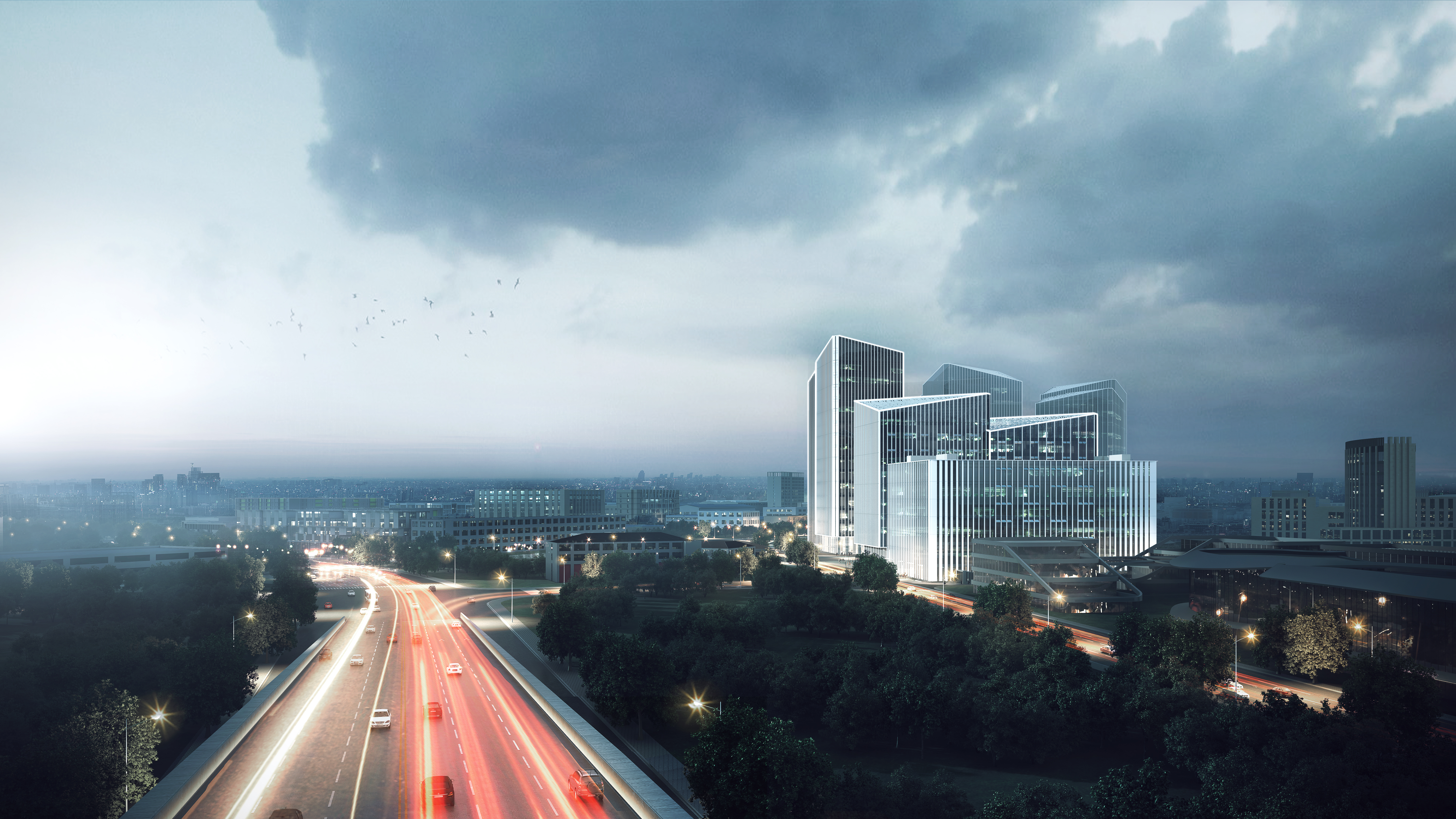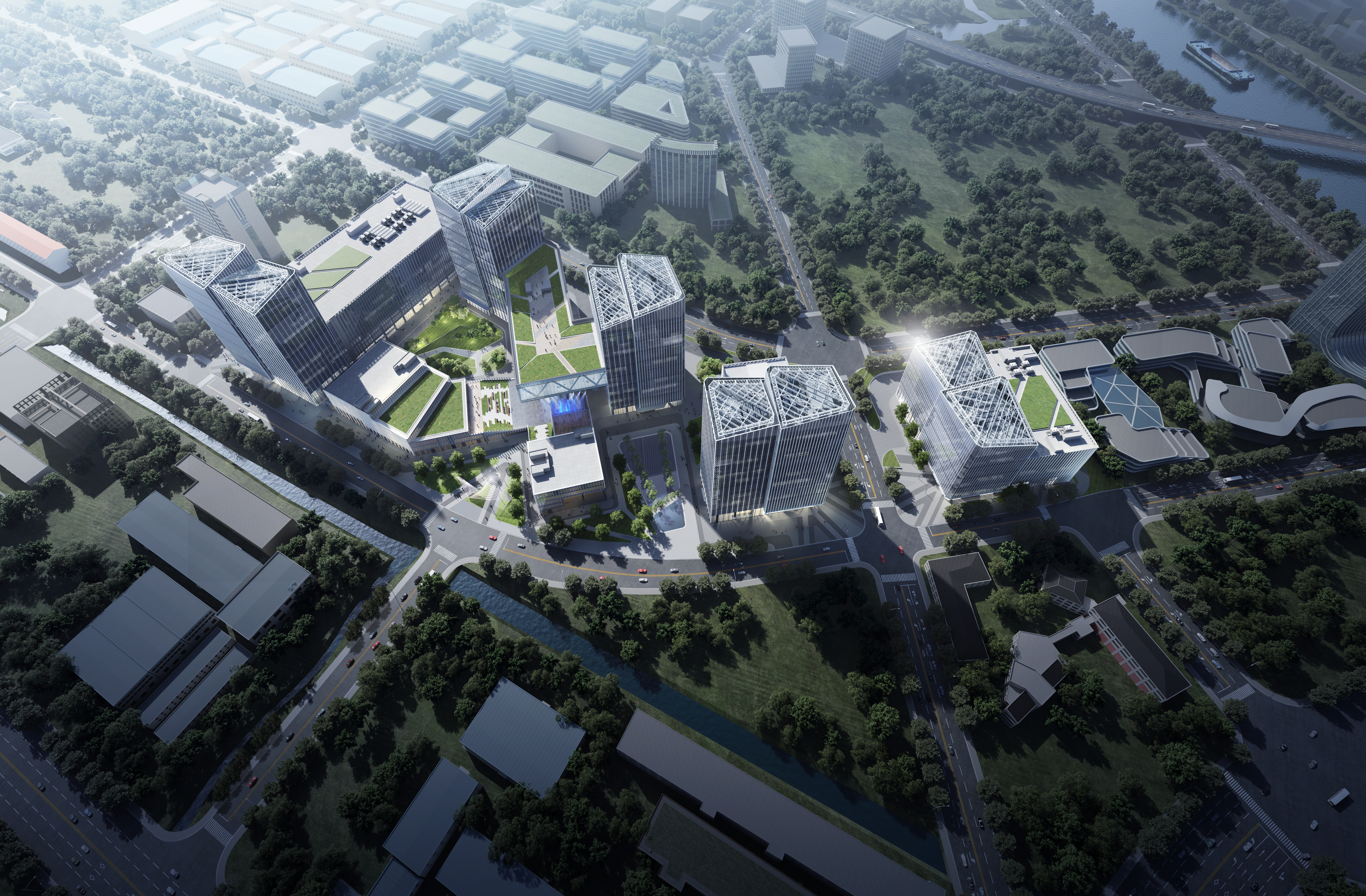 Through enriching urban interfaces and architectural forms, our goal is to shape a new city skyline and enhance the landmark presence and sense of arrival in the area. We have decomposed the tower buildings into distinct volumes, emphasizing vertical lines to create a taller, sleeker, and more technologically advanced appearance that contributes to a distinct urban interface. Simultaneously, we have integrated the design of the tower roof and facade, combining lines and triangular facets to create an aesthetically pleasing fifth elevation. From an aerial perspective, the park presents a clean and unified image.