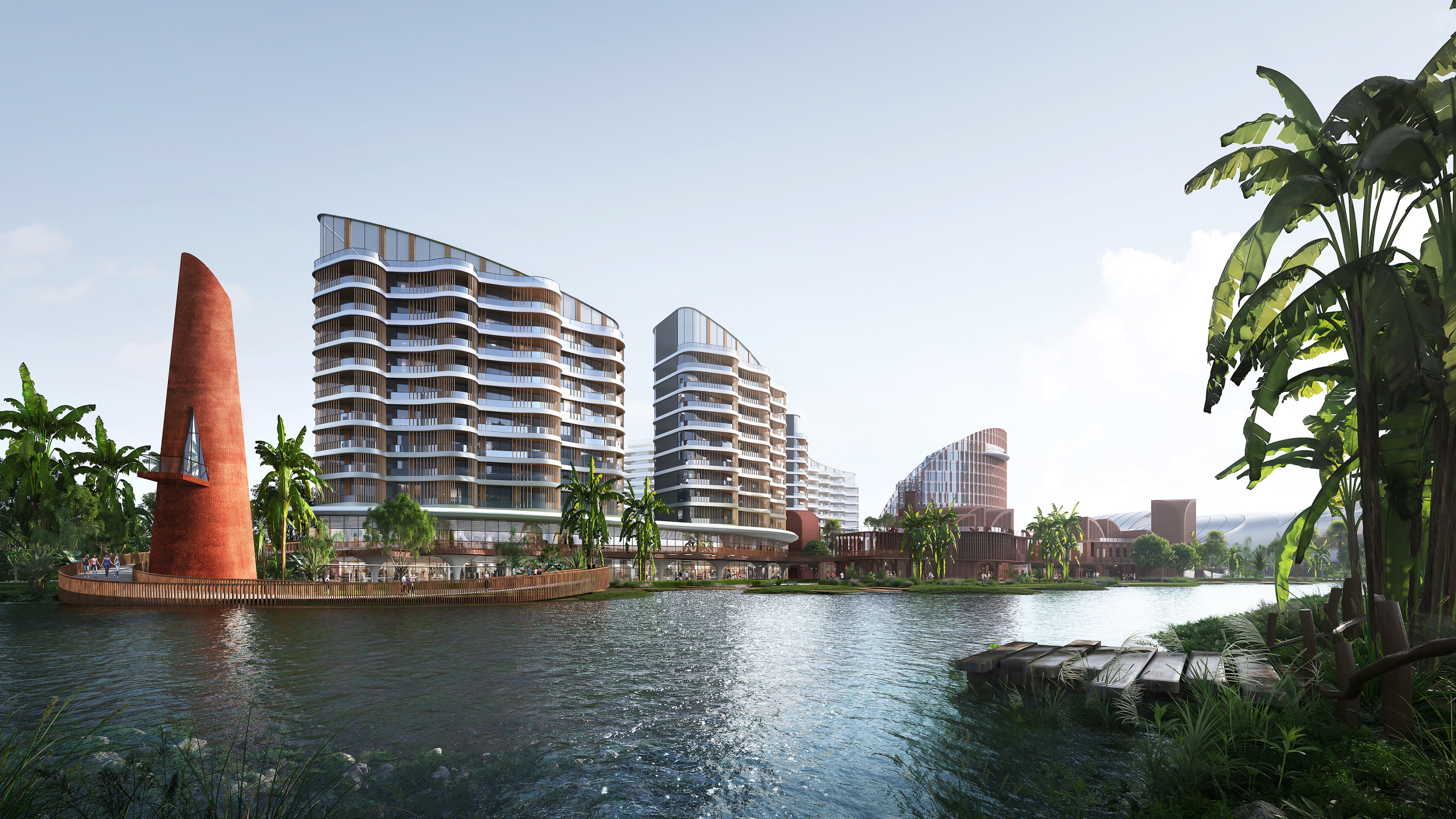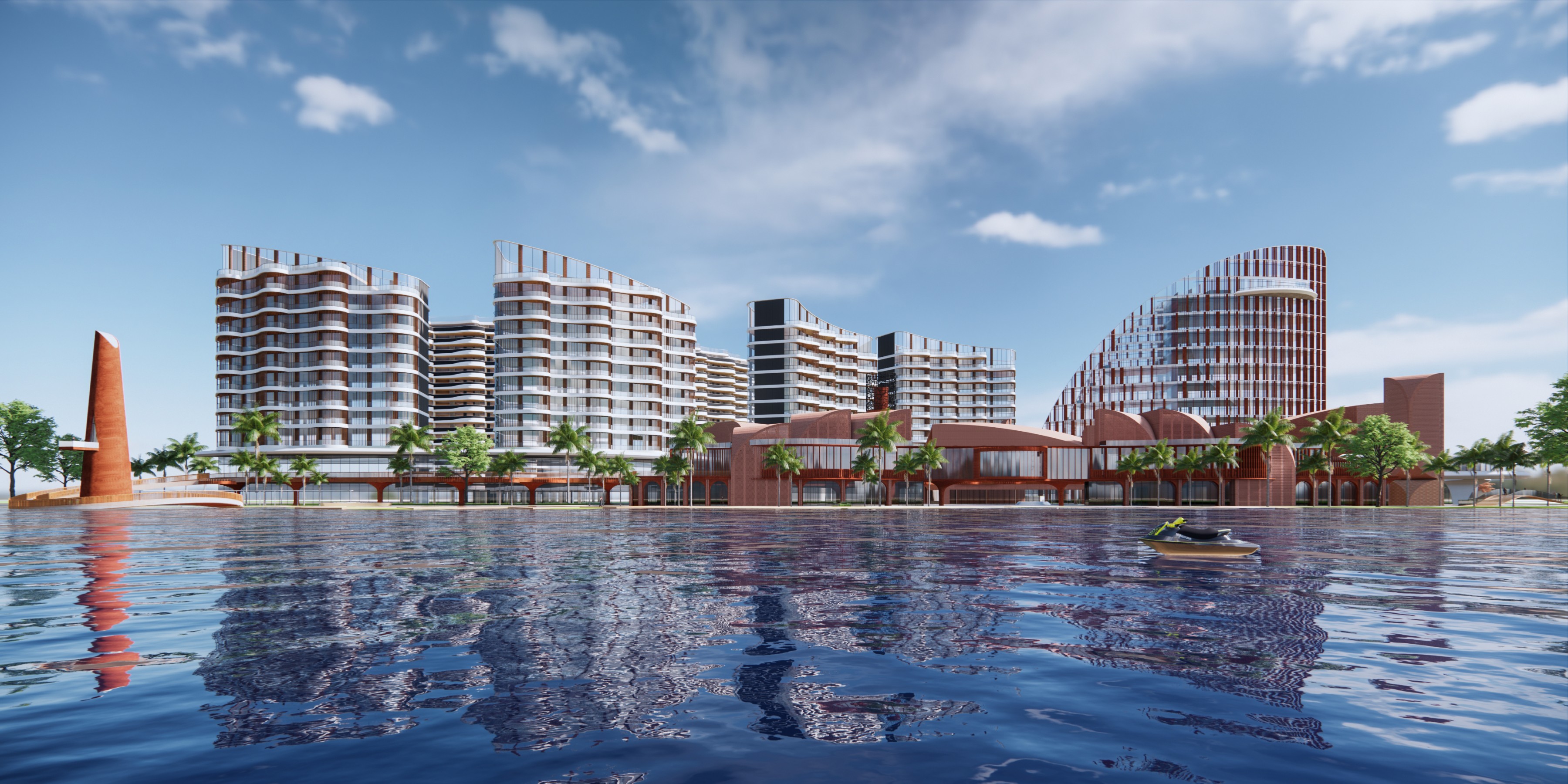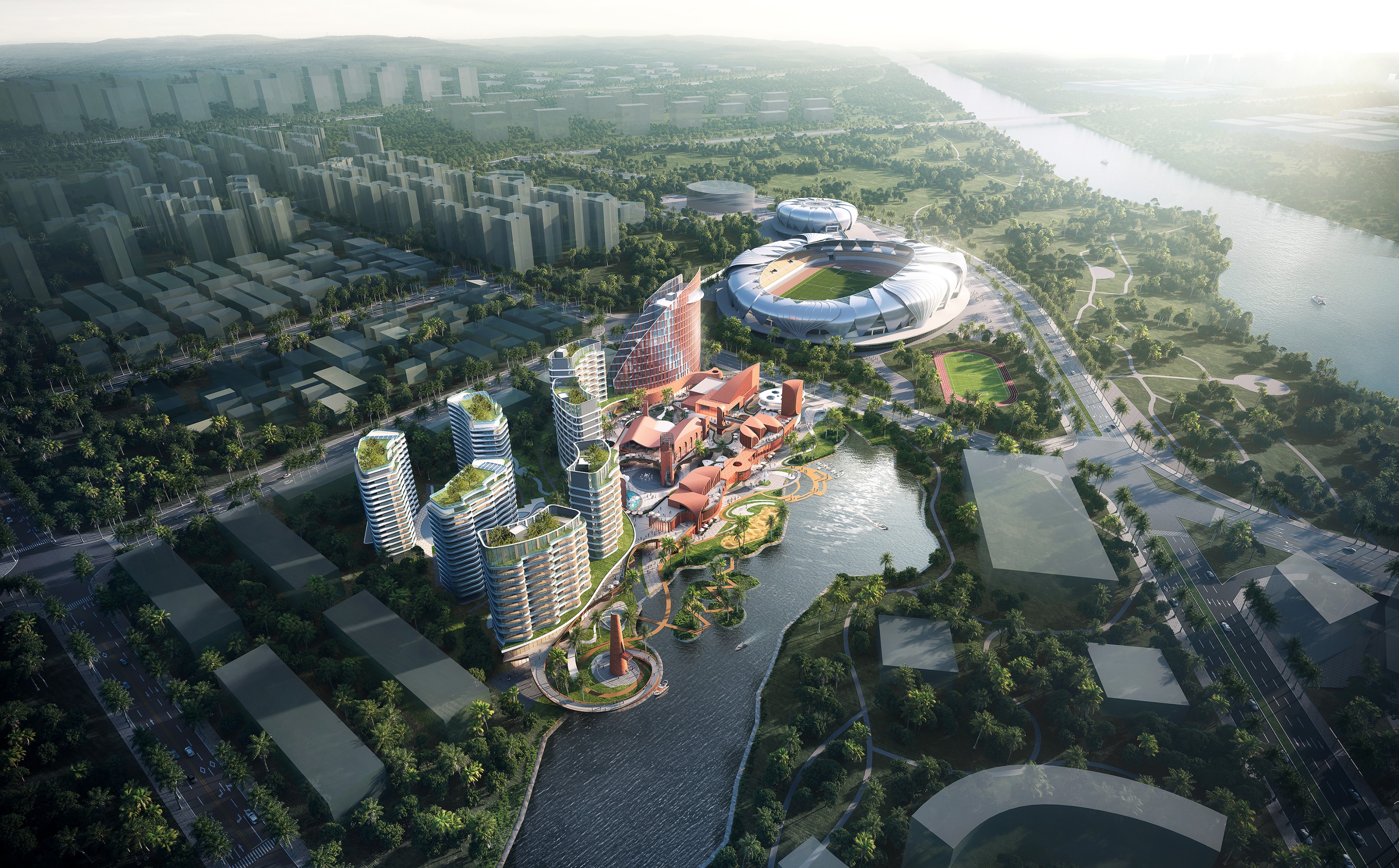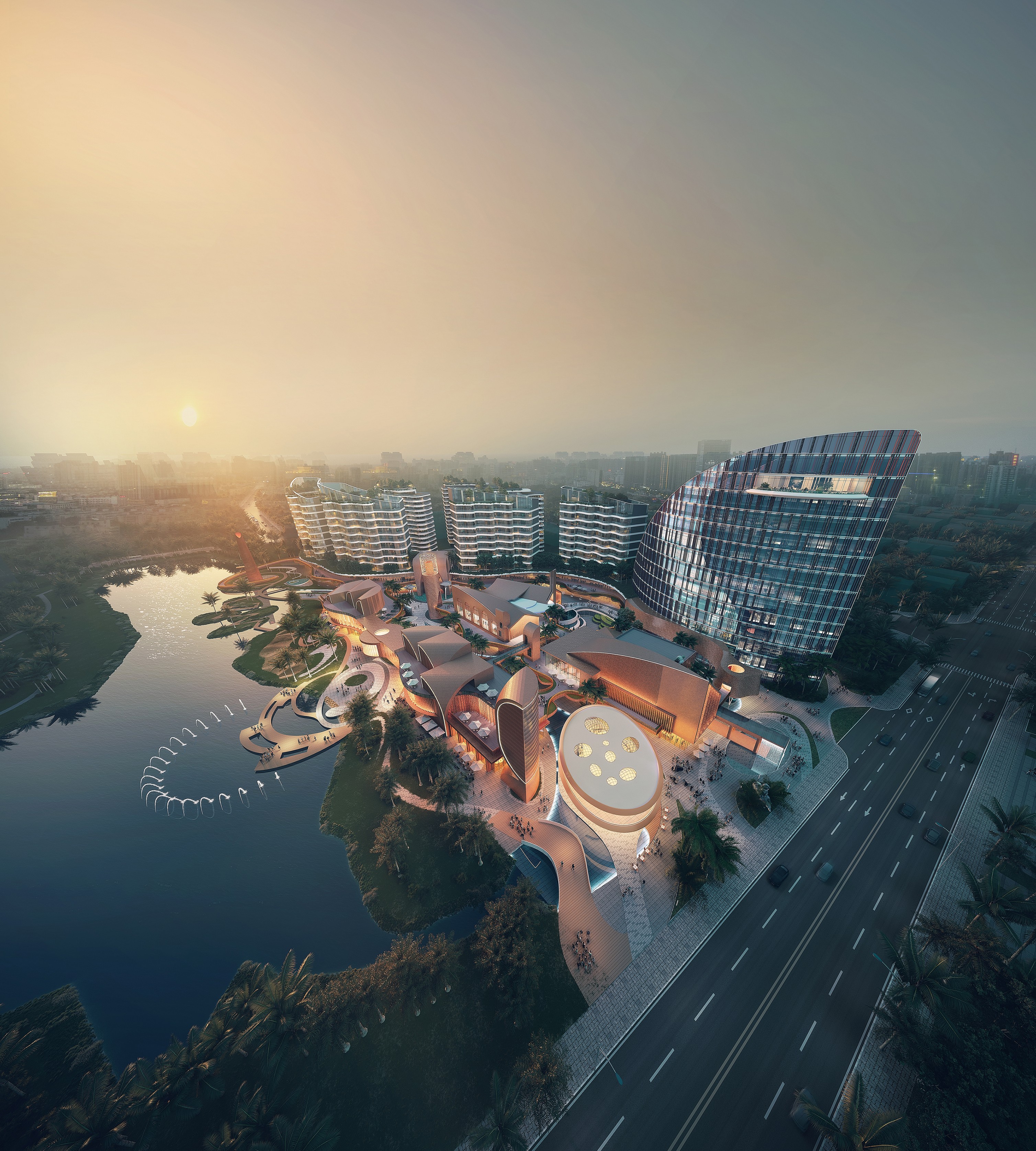 The project is located on the east side of the Wanquan River in Qionghai City, Hainan Island, China, with obvious advantages in surrounding landscape resources and sports venue. Meanwhile, in line with the development trend of the urban cultural and tourism industry, it will create an international service cluster area integrating multiple business forms. This urban design, targeting investors, vacationers and young people, proposes the theme of "Mirror Flower Sea City" to create a multi-functional internet-famous community. Mirror - the scene captured through the lens; Flower - the fourth generation ecological residence; Sea - waterfront space navigation IP; City - a district with diverse charm.
