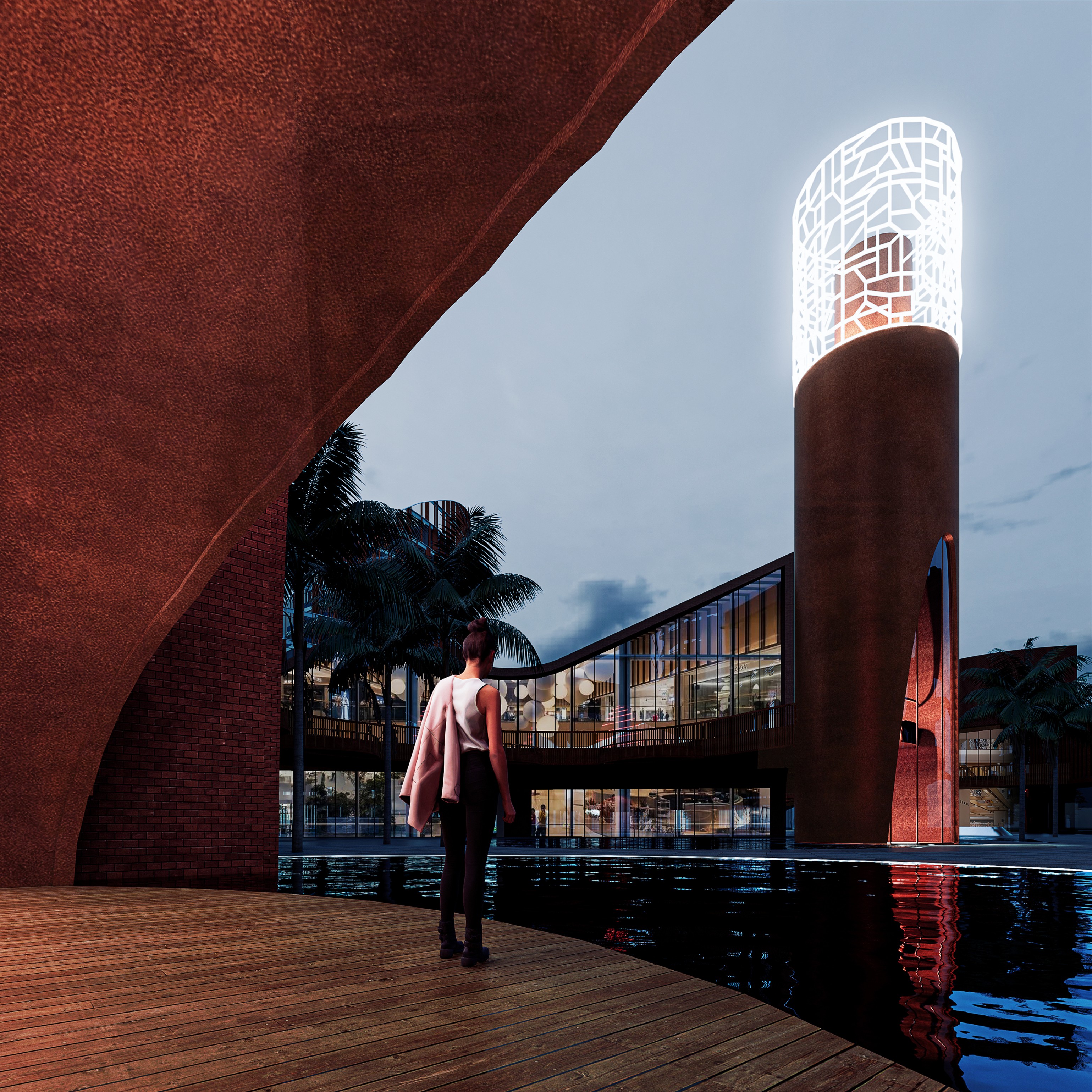 The design takes a unique approach, breaking away from the traditional commercial concrete model. It takes culture and tourism as the entry point to create a complex internet-famous community with the theme of "Mirror Flower Sea Market", transforming from a passing point to a cultural and tourism check-in destination. Thus, the "destination identity" was highlighted, closely integrating the concept of "Mirror Flower Sea City" with Qionghai's profound cultural heritage, modern commercial consumption demands, and meticulous operation and management, to create a place that not only catches people's eyes but also touches their hearts, making them willing to stay and consume.