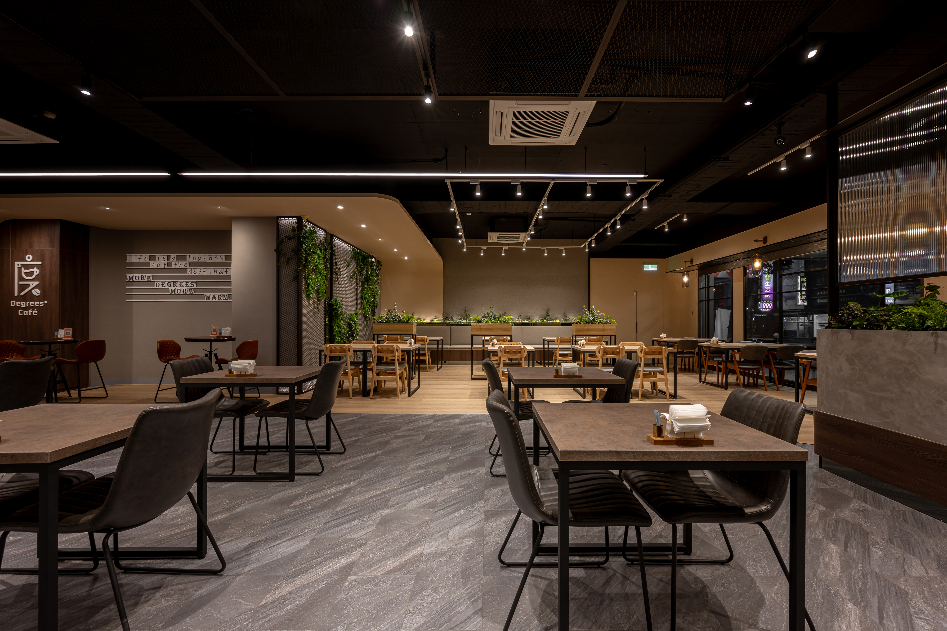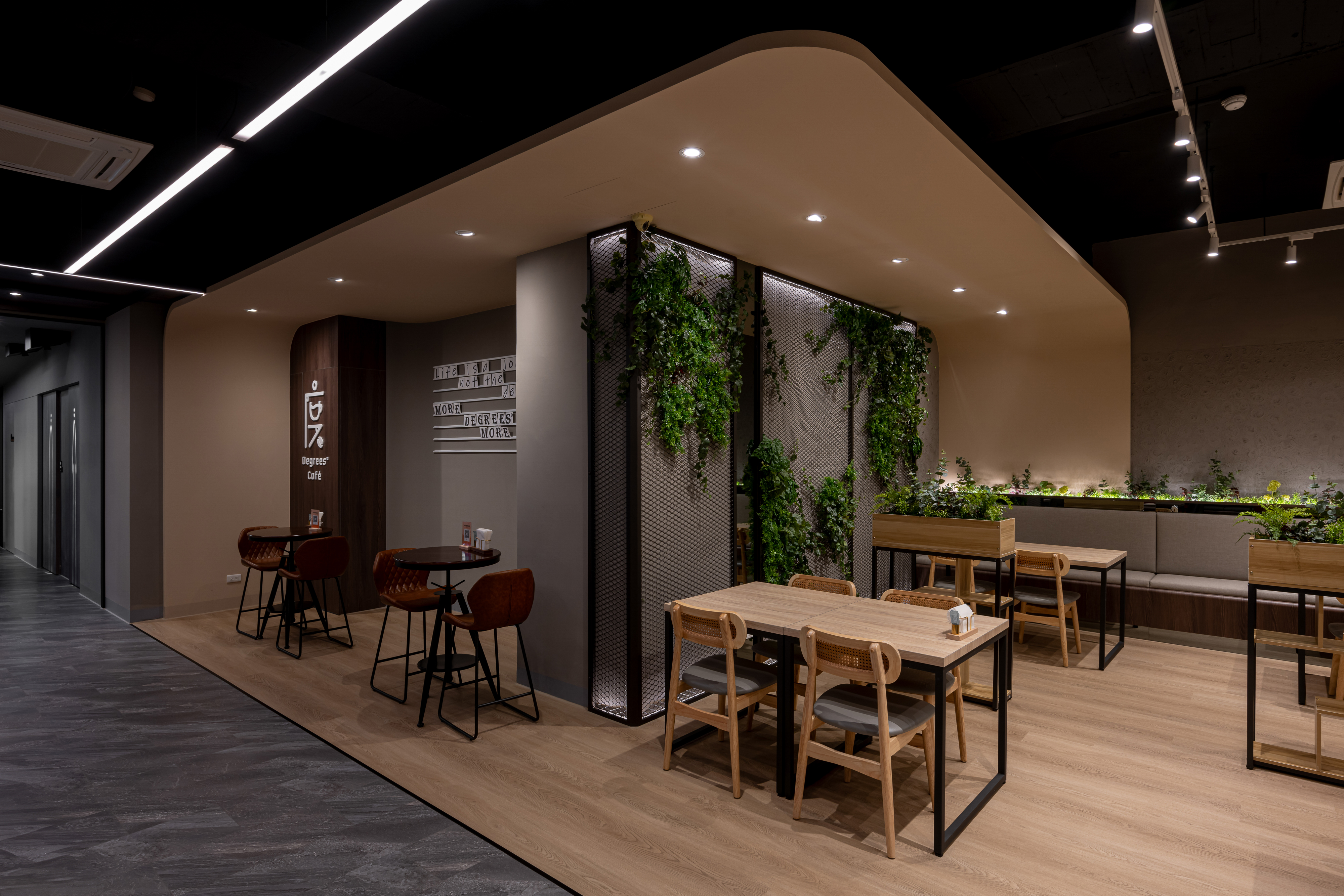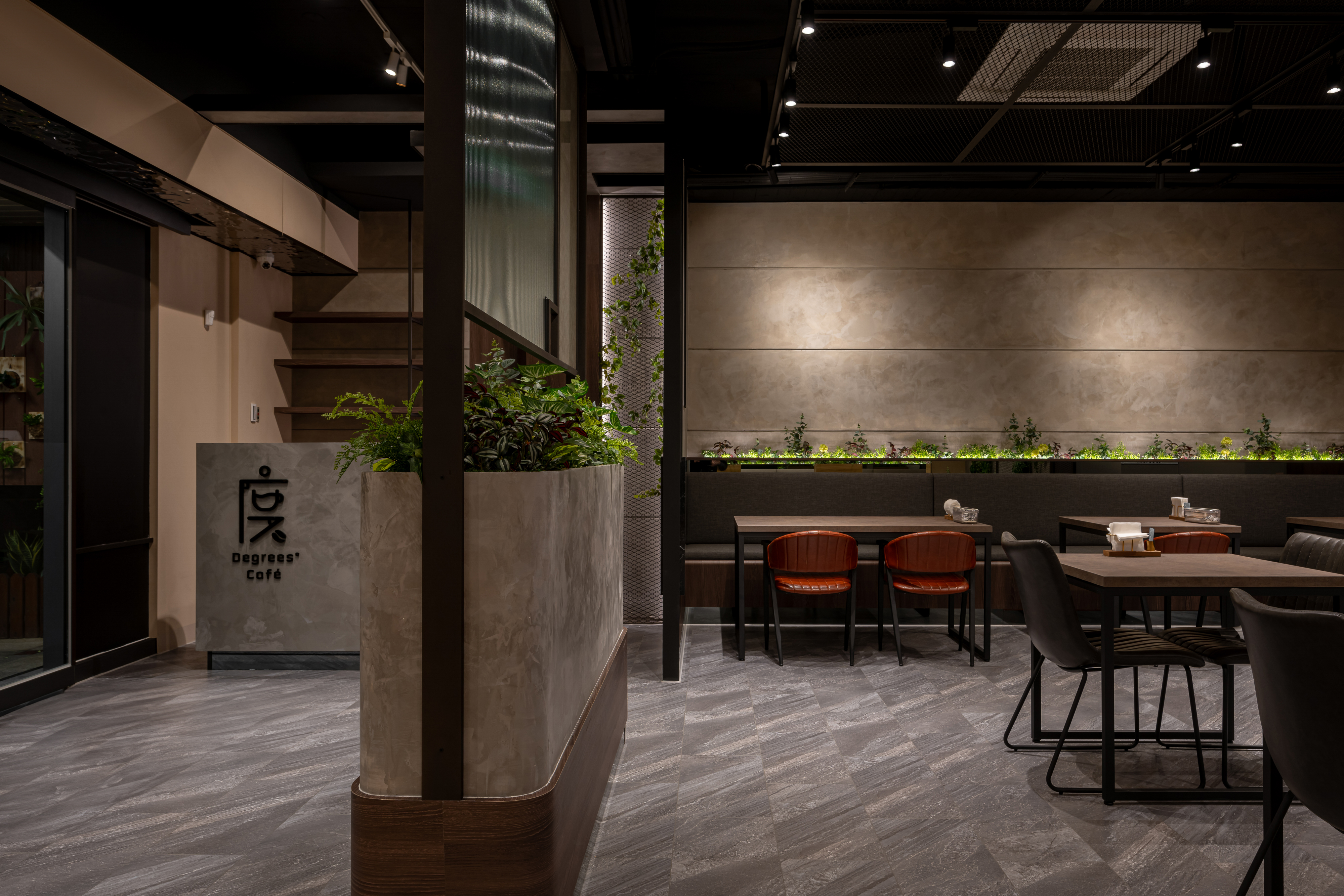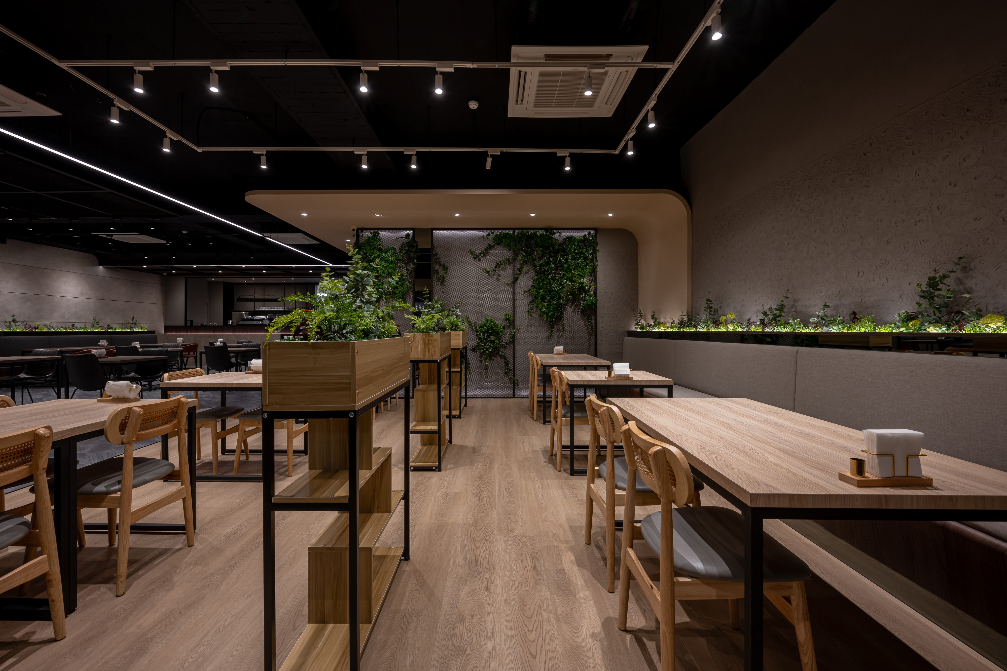 This project incorporates raw ironwork and a monochromatic colour palette to establish a rugged aesthetic. Wood elements introduce warmth and softness through the interplay of light and shadow, creating rich, harmonious layers within the space. Lush greenery cascades over the lattice walls, infusing vibrancy and a natural fragrance. The semi-open kitchen and transparent layout facilitate smooth movement, enhancing the dining experience for customers. This design elevates the café from a basic consumption area to a refined urban oasis that promotes comfort and relaxation.
