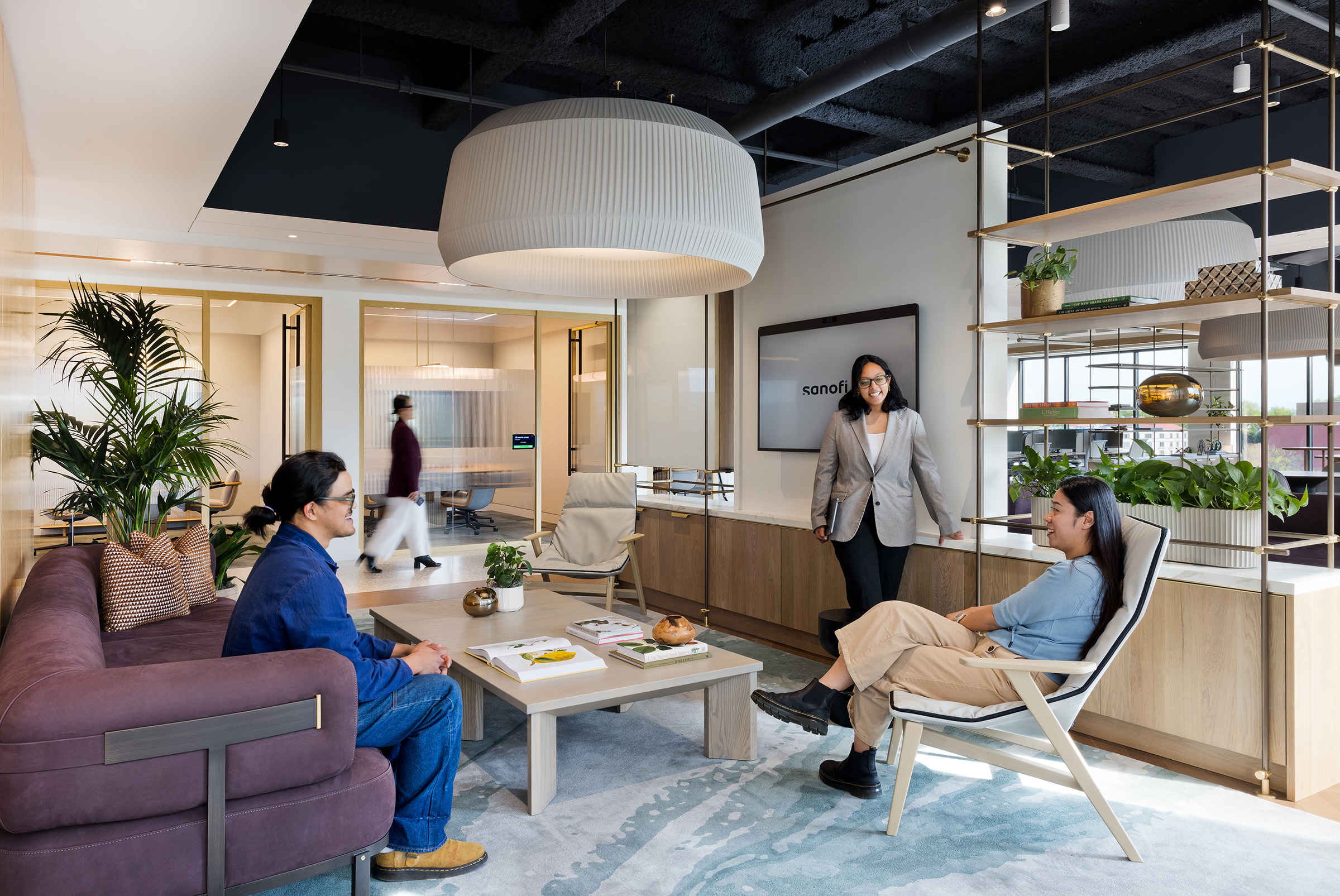 Sanofi M Station represents a deep investment in creating a workplace that people genuinely want to come to—one that transforms the employee experience and reshapes how work happens. As one of the company’s signature sites, the 260,000-square-foot space embodies Sanofi’s global workplace strategy and sets a new standard for human-centric design that fosters connection, choice, and well-being.