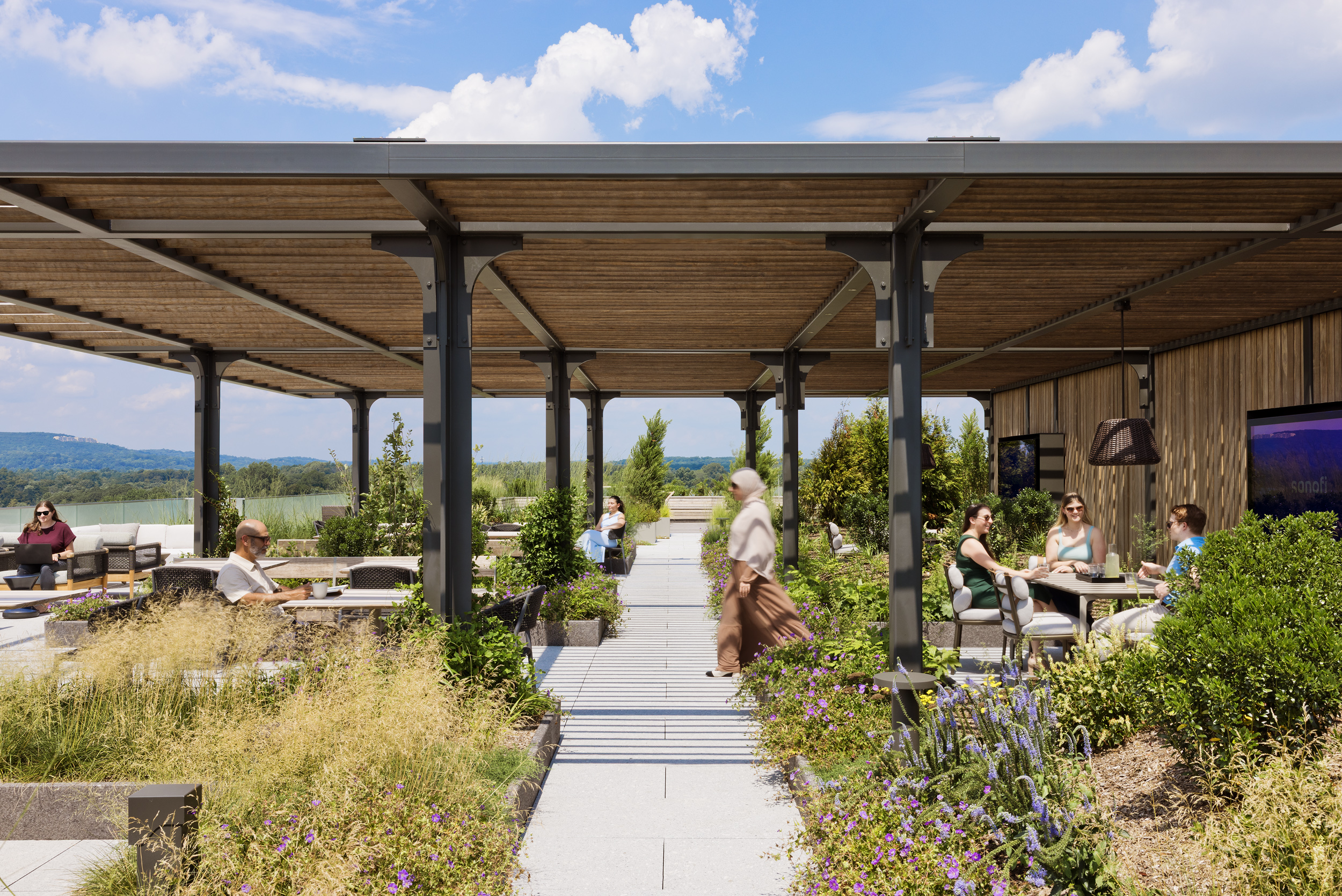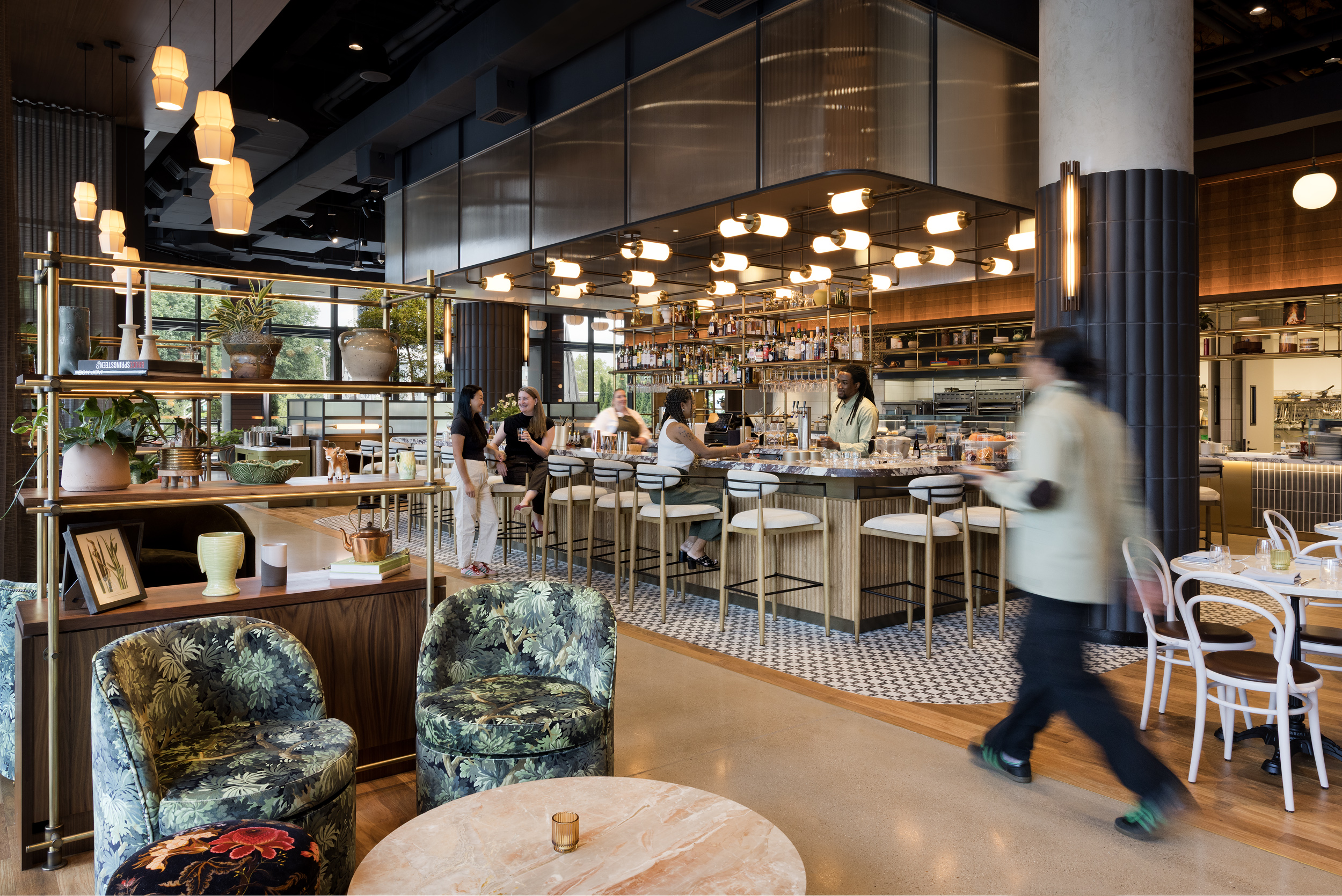 A wide variety of work settings empowers individuals and teams to choose how and where they work best. Meeting spaces draw inspiration from the comforts of home, and rooftop terraces offer seamless indoor-outdoor experiences. Each floor includes food experiences that go beyond the expected, from everyday pantries and catering kitchens to rotating chef pop-ups. On-site hospitality ambassadors provide personal support throughout the day, enriching the workplace experience.