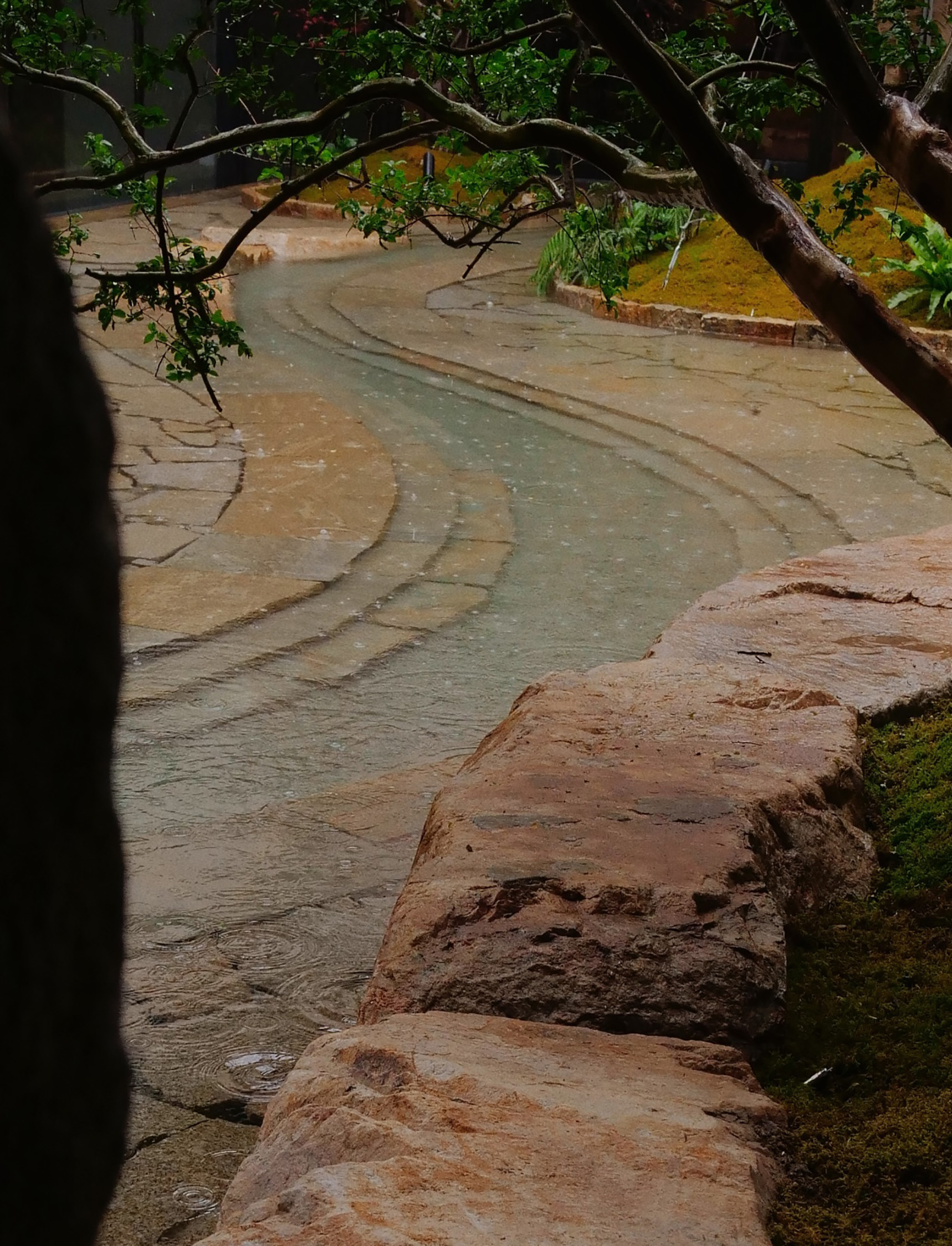 Construction of an Ecological Rain Garden System: The design features naturally permeable ecological gravel swales to filter and collect rainwater. The gravel is sourced and processed locally from Zijin Mountain. With dynamic curves that mimic natural streams, the system creates a garden-like landscape space and constructs an "ecologically breathable soil capillary network."