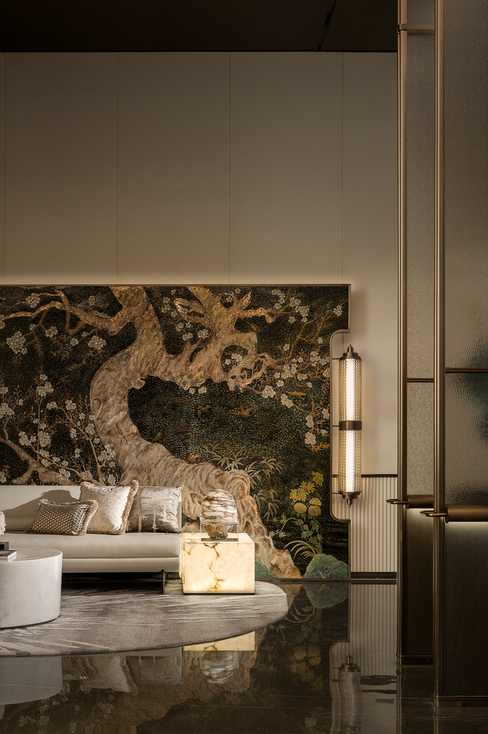 The life-oriented integration of intangible cultural heritage (ICH) crafts breaks the traditional model of exhibition hall-style display of ICH culture. It deeply integrates ICH crafts such as Shu brocade, silver filigree, lacquerware, and mother-of-pearl inlay into soft decoration details, realizing the transformation of traditional culture from a "symbol" to an integral part of "daily life". This provides a replicable implementation paradigm for the cultural empowerment of real estate projects.