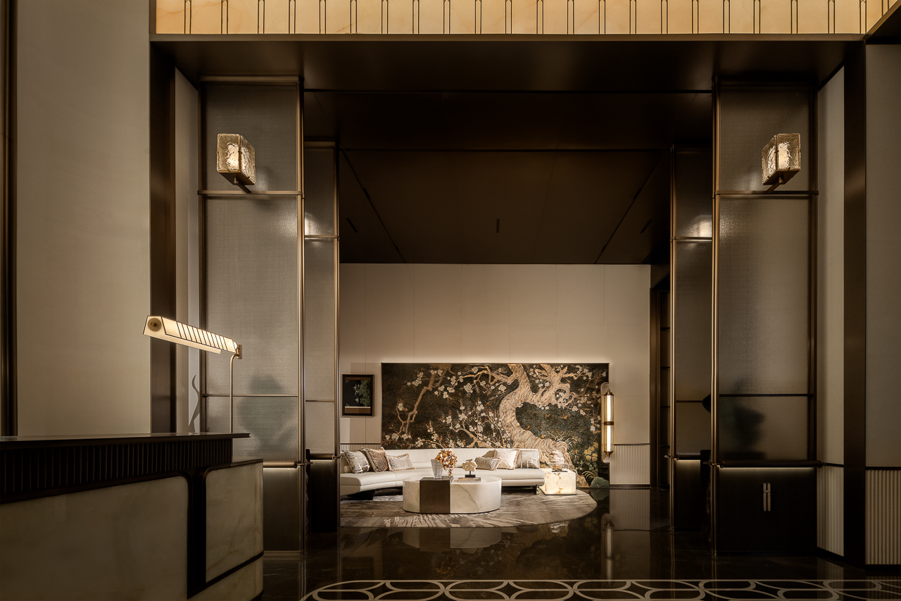 To enhance cultural attributes, customized exclusive materials have been created, including illuminated marble onyx ancient tree screens (integrating lacquerware, mother-of-pearl inlay, and rock color painting techniques) and metal sandstone wall lamps (reproducing seed texture). This not only satisfies the clientele's pursuit of "scarcity" but also boosts the project's market competitiveness through customized products.