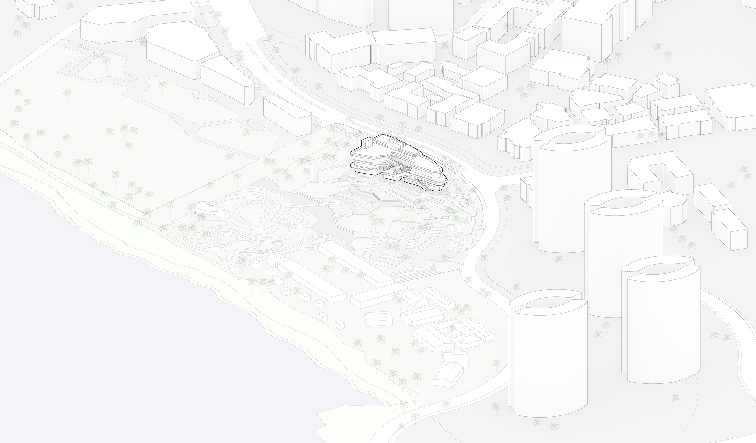 Visitors to the beach in Wanning seek the expansive openness of the ocean as an escape from the city, embracing nature and the sea breeze. We envision to place a comfortable and relaxed multi-layered platform between the city and the beach, creating rich outdoor Spaces on the platform and extending the indoor space to the outdoors. The horizontal lines of the decks and the staggered outdoor platforms meet the operational requirements of various leisure and dining formats, while also integrating the building into the seaside skyline.