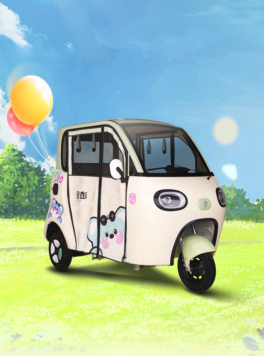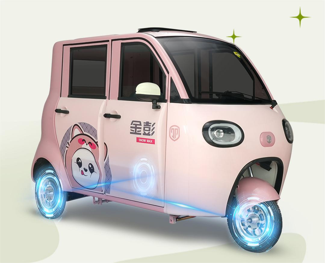 The JinPeng Snow series, a mobility solution tailored for mothers, ingeniously integrates fashion, safety, and comfort. Inspired by China’s national treasure—the giant panda, this streamlined product incorporates the animal’s typical elements like its round eyes and facial contour, creating an adorable and charming appearance. The frame-plate composite structure, paired with one-piece thickened metal plates, significantly enhances impact resistance to ensure driving stability. Moreover, features including bionic LED lens headlights, a three-wheel linked braking system, a high-definition floating LCD dashboard, and an automobile-grade backup camera contribute to a convenient, safe driving experience.