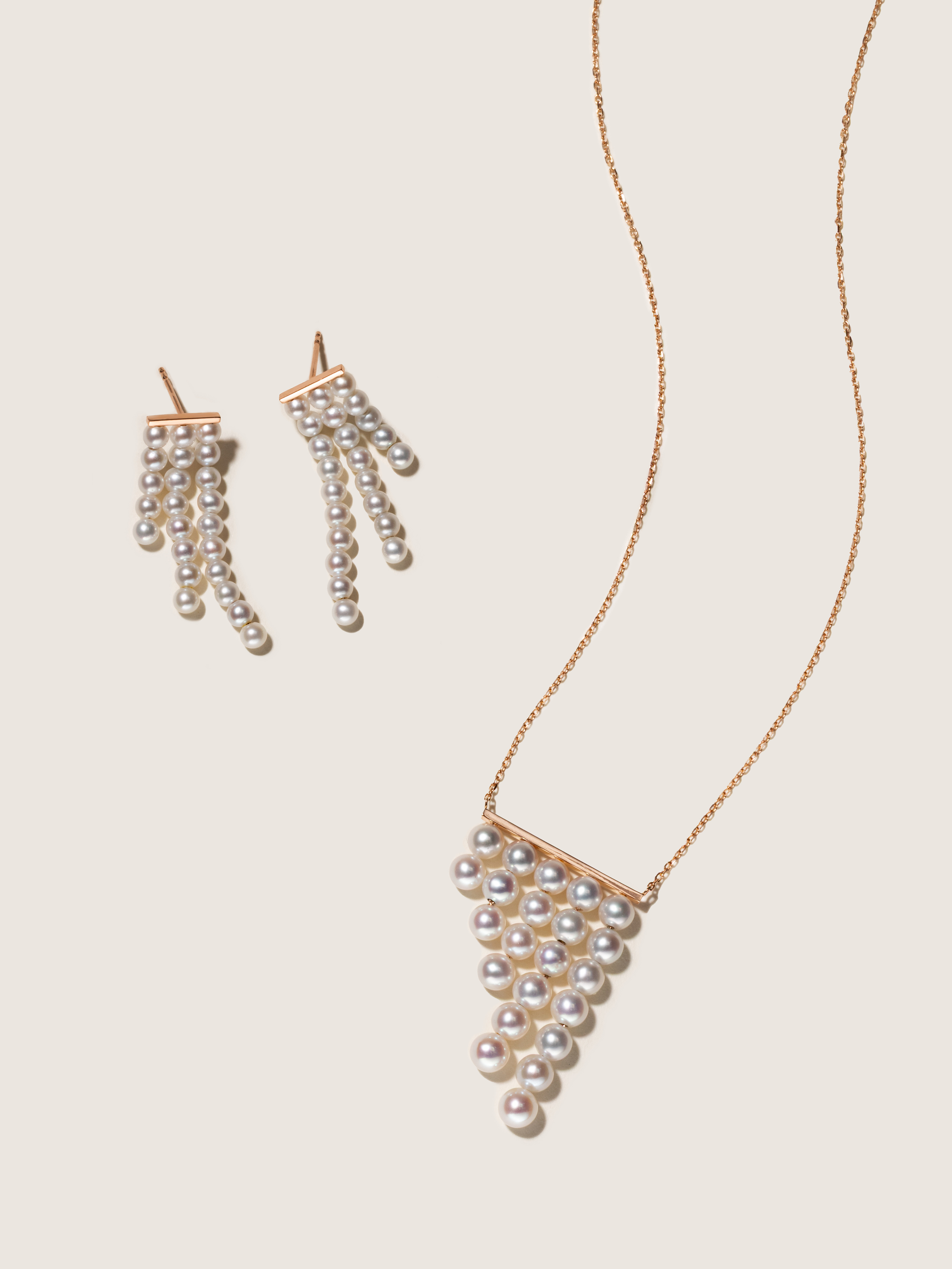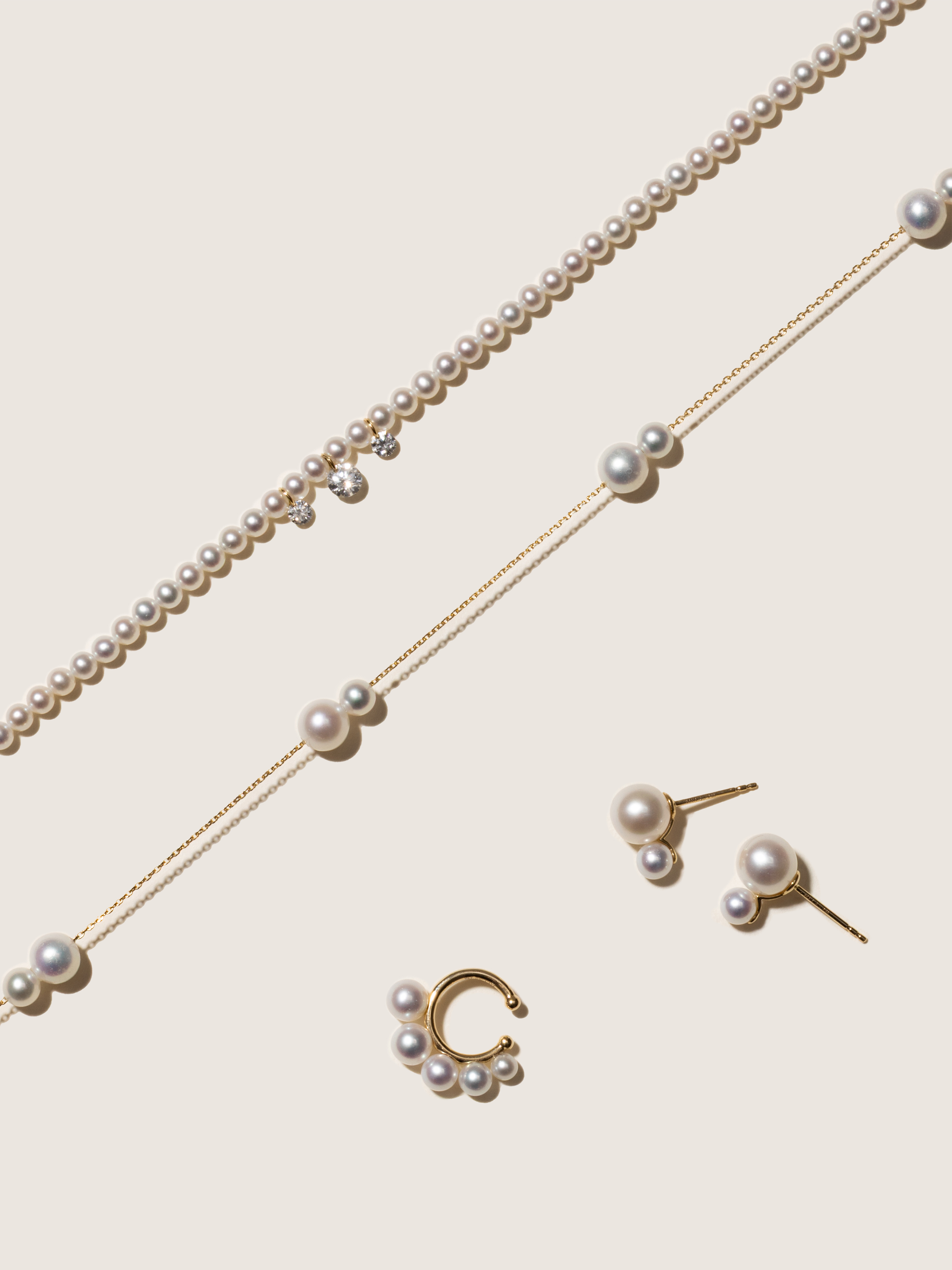 The concept of “flow” defines the very soul of this collection. Crafted from cultured freshwater pearls, 14K gold, and lab-grown diamonds, each piece unites precision with poetry: pearls of graduated sizes are meticulously aligned along fluid linear forms, creating a visual cadence that flows. This interplay speaks not only of elegance but echoes the inner world of modern women—finding coherence within motion, balance within growth, and unwavering strength beneath a surface of grace.