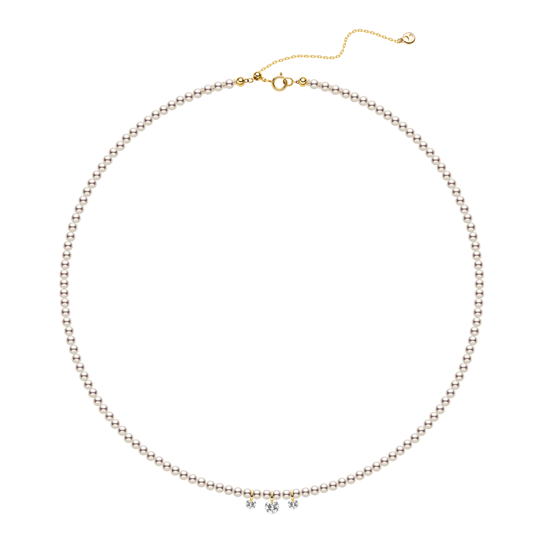 The key challenge lay in harmonizing the organic beauty of pearls, the brilliance of diamonds, and the disciplined geometry of metal into a cohesive, fluid visual language. Each pearl was meticulously selected for its harmonious proportions, soft glow, and graceful curvature, then arranged to create a smooth and natural gradation. Through advanced micro-drilling, minute and perfectly centered apertures were crafted into every pearl, enabling them to float seamlessly along 14K gold chains. Diamonds, delicately perforated and threaded, appear to merge with the metal framework, achieving a refined, durable “invisible inlay.” The 14K gold was transformed through a specialized forging process, retaining its original texture and strength while gaining a soft, luminous finish—a gentle echo to the pearl’s glow and the diamond’s brilliance. Here, organic beauty and precise craftsmanship do not compete—they converse. And from this dialogue emerges a new expression of jewelry: alive, flowing, and intimately resonant.