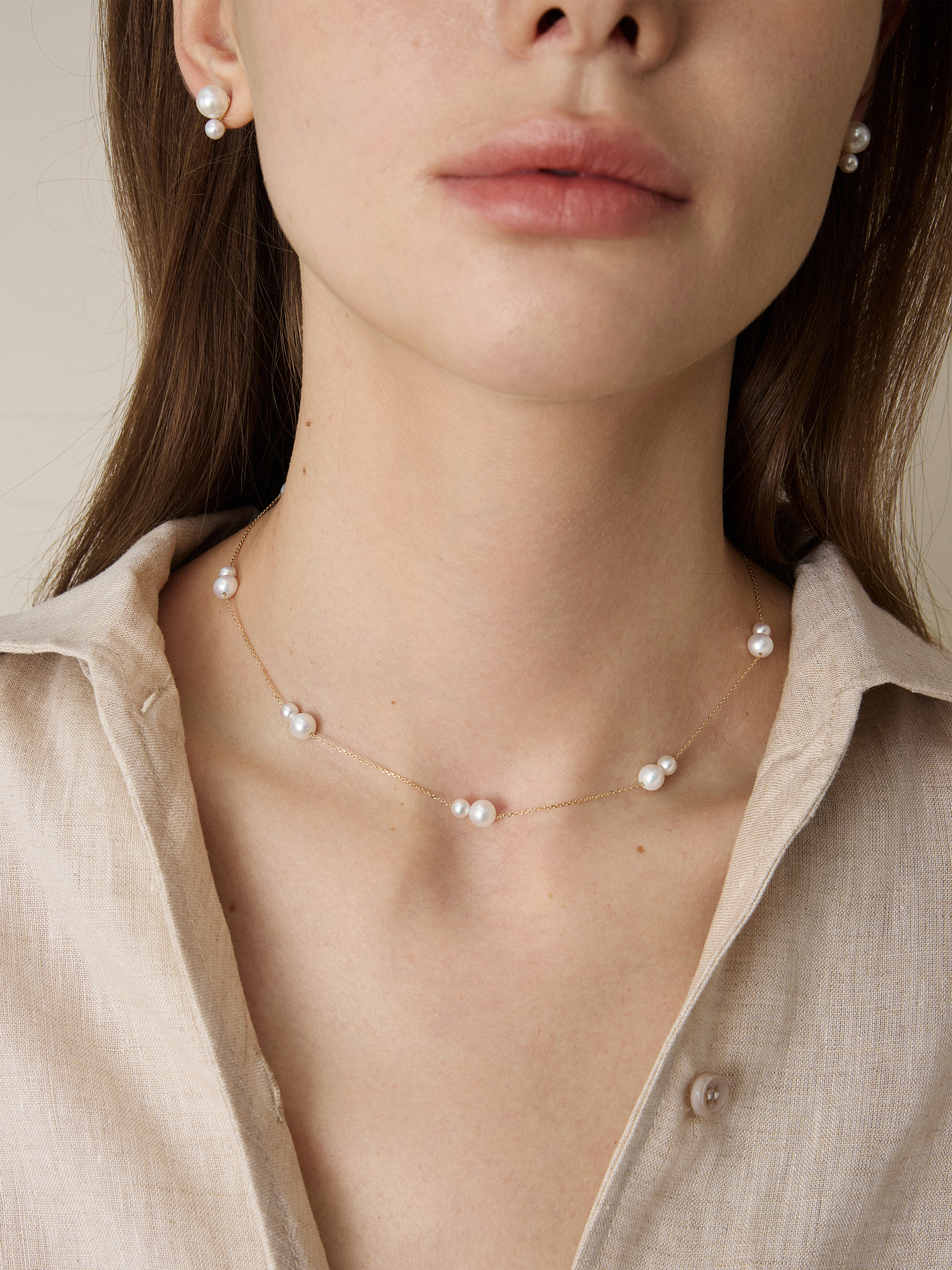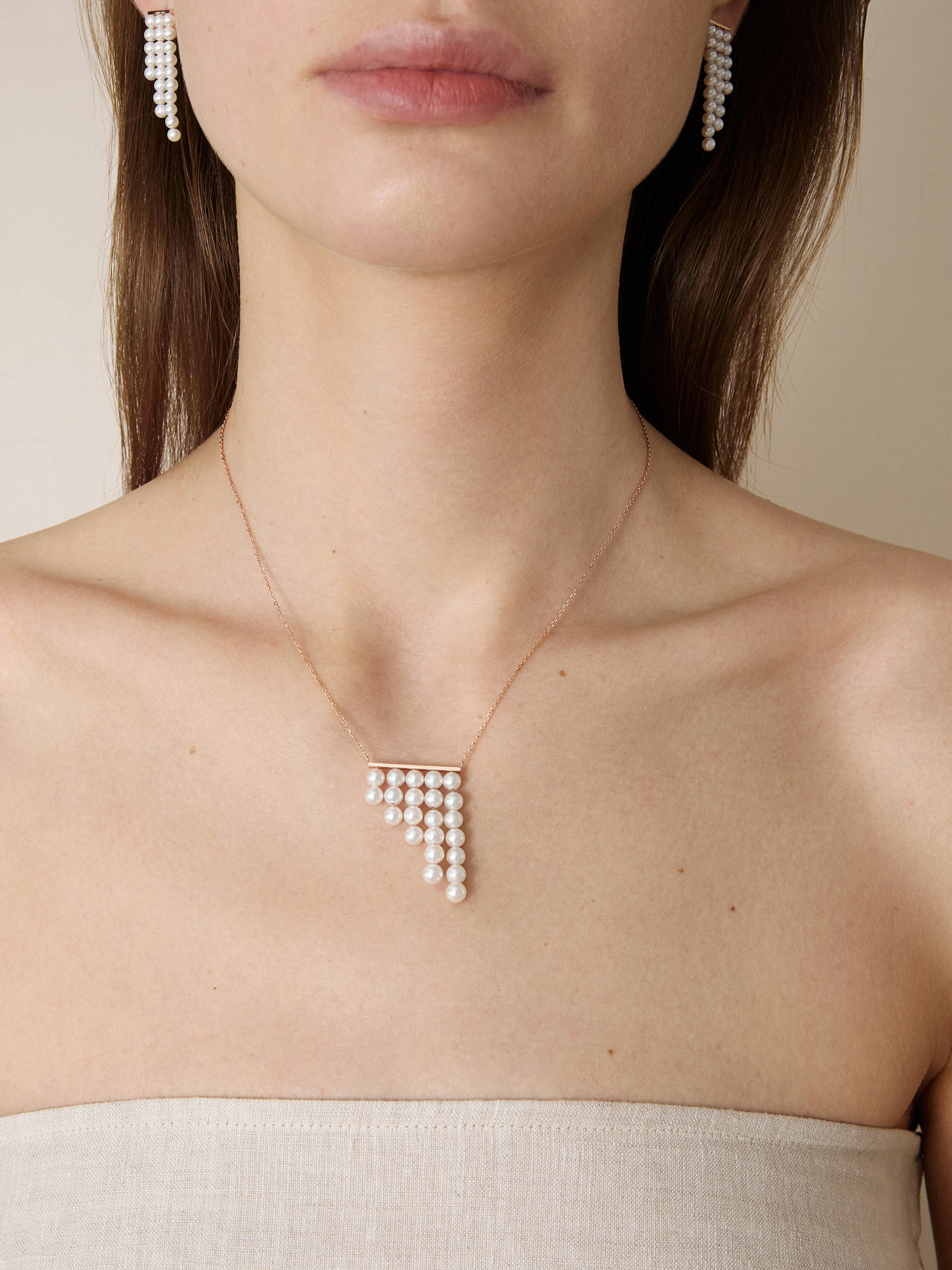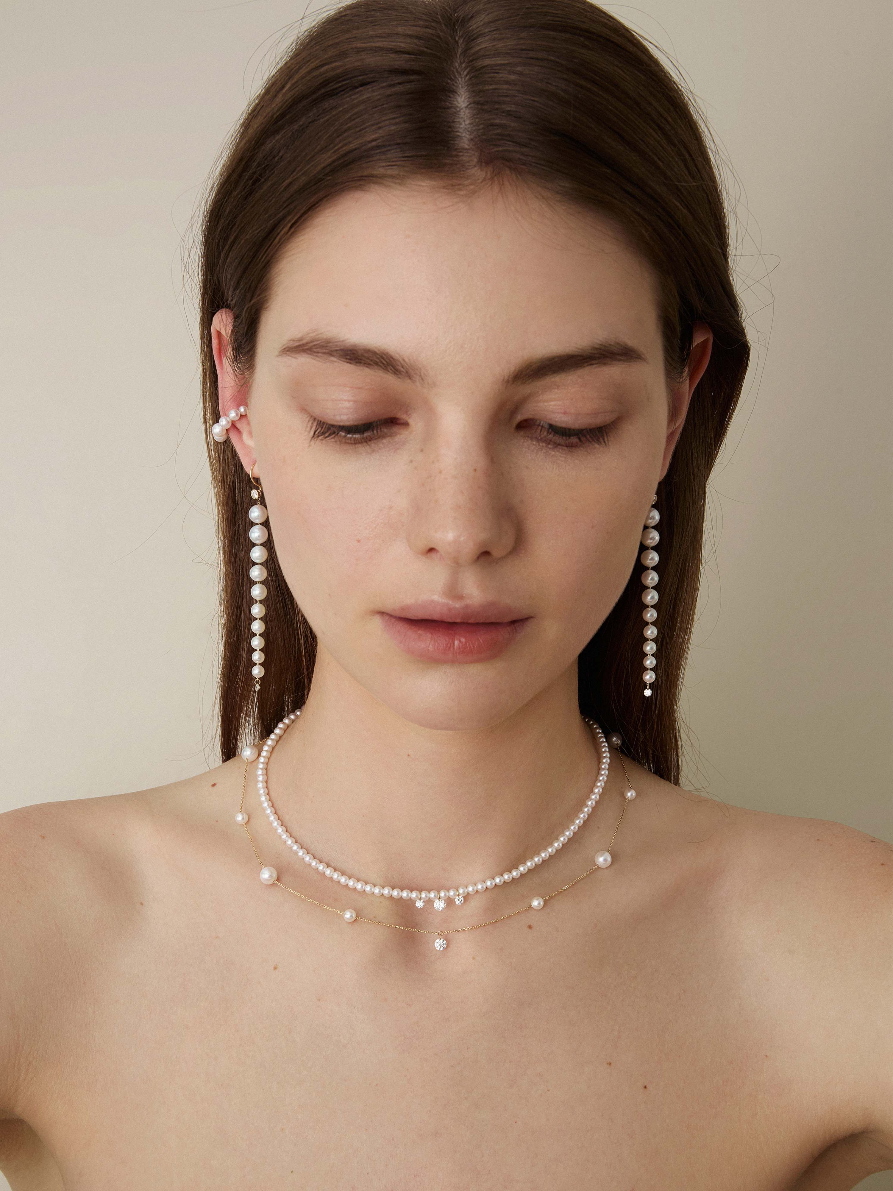 In a world of constant motion, modern women move with grace and strength—flowing seamlessly between roles, navigating complexity with inner harmony, and deepening their truth through introspection. Their journey is one of becoming: a quiet evolution toward inner freedom and abundance. Inspired by this very essence of modern women, the Flow Collection focuses on the pearl—an emblem of organic grace and resilience—as its core. Through creative pieces like ear studs, drop earrings, and necklaces, the collection translates women’s inner rhythm into tangible forms: pearls of graduated sizes are arranged with precision, crafting a lyrical visual cadence. No longer mere ornament, each piece becomes a living gesture—jewelry that flows and echoes the dynamic spirit it honors.