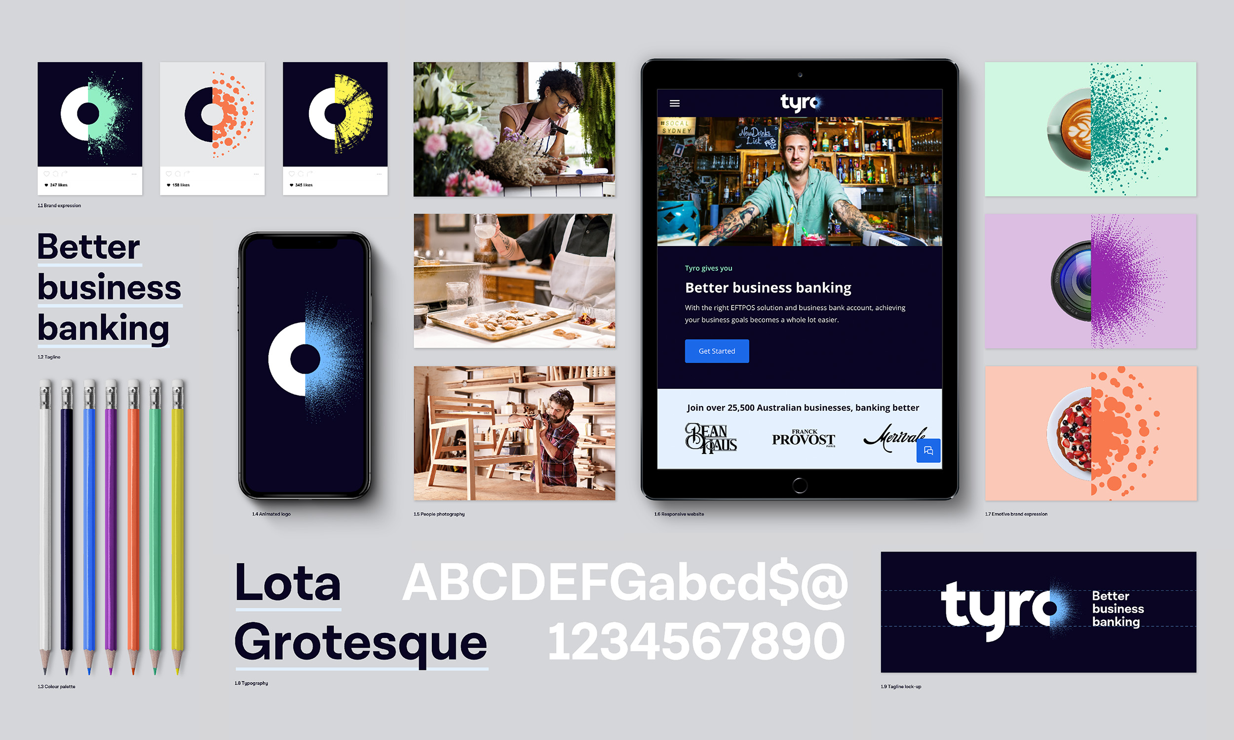 An evaluation of the company’s communications and extensive stakeholder research was undertaken to understand and build brand insights to align with the company’s growth strategy. The identity is based on the idea of Tyro taking care of banking and payments to enable the business owner to focus on their passion: igniting the business.