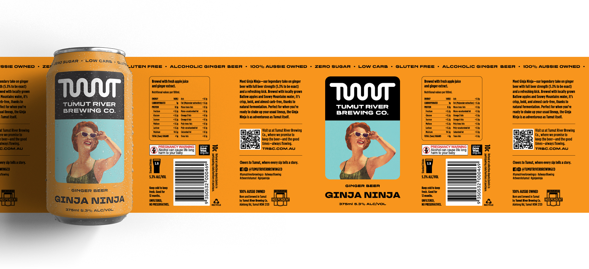 TRBC’s packaging needed to perform in one of the most competitive and visually noisy categories out there. Craft beer is a battlefield of brands, and as a regional brewery without the marketing budgets of bigger players, the design had to work harder. The challenge was to capture the heart of Tumut, authentic, cheeky, and real, while still feeling polished and professional. We also needed to accommodate practical production constraints, using digital print runs and variable SKU management while preserving quality and shelf appeal. The result? A flexible packaging system that is as creative and characterful as the beers themselves, without compromising on production efficiency.