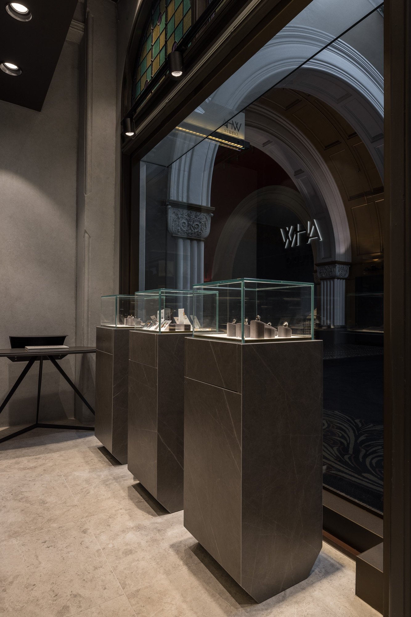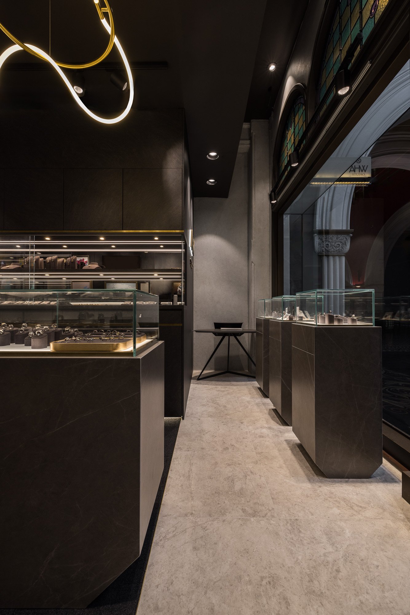 We challenged conventional store layouts by creating two distinct, interconnected zones: an intimate, high-luxury space for premium pieces, and a gallery setting for casual jewellery and artwork. This hybrid format dissolves the boundary between retail and exhibition, allowing customers to engage with the brand on multiple emotional and sensory levels—a shift from transactional shopping to experiential storytelling. Lighting was reimagined as a core design element rather than an afterthought. Integrated into the joinery and ceiling, it delivers precise, jewel-specific illumination while dramatically enhancing material textures. This creates a heightened sense of theatre in a commercial setting, turning product display into a curated visual performance.Sustainability was not simply an add-on—it was integral. The use of recycled and responsibly sourced materials, paired with energy-efficient lighting systems, demonstrated that luxury retail can champion