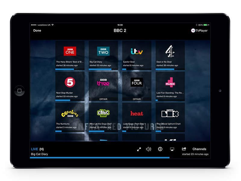 TVPlayer is a FREE live TV streaming service available in the UK on desktop, mobile and tablets. Described by The Debrief as ‘one of the most successful apps of 2014’, TVPlayer has proven to be an overnight success, satisfying the exponential growth in demand from consumers wanting to watch live TV across multiple devices.