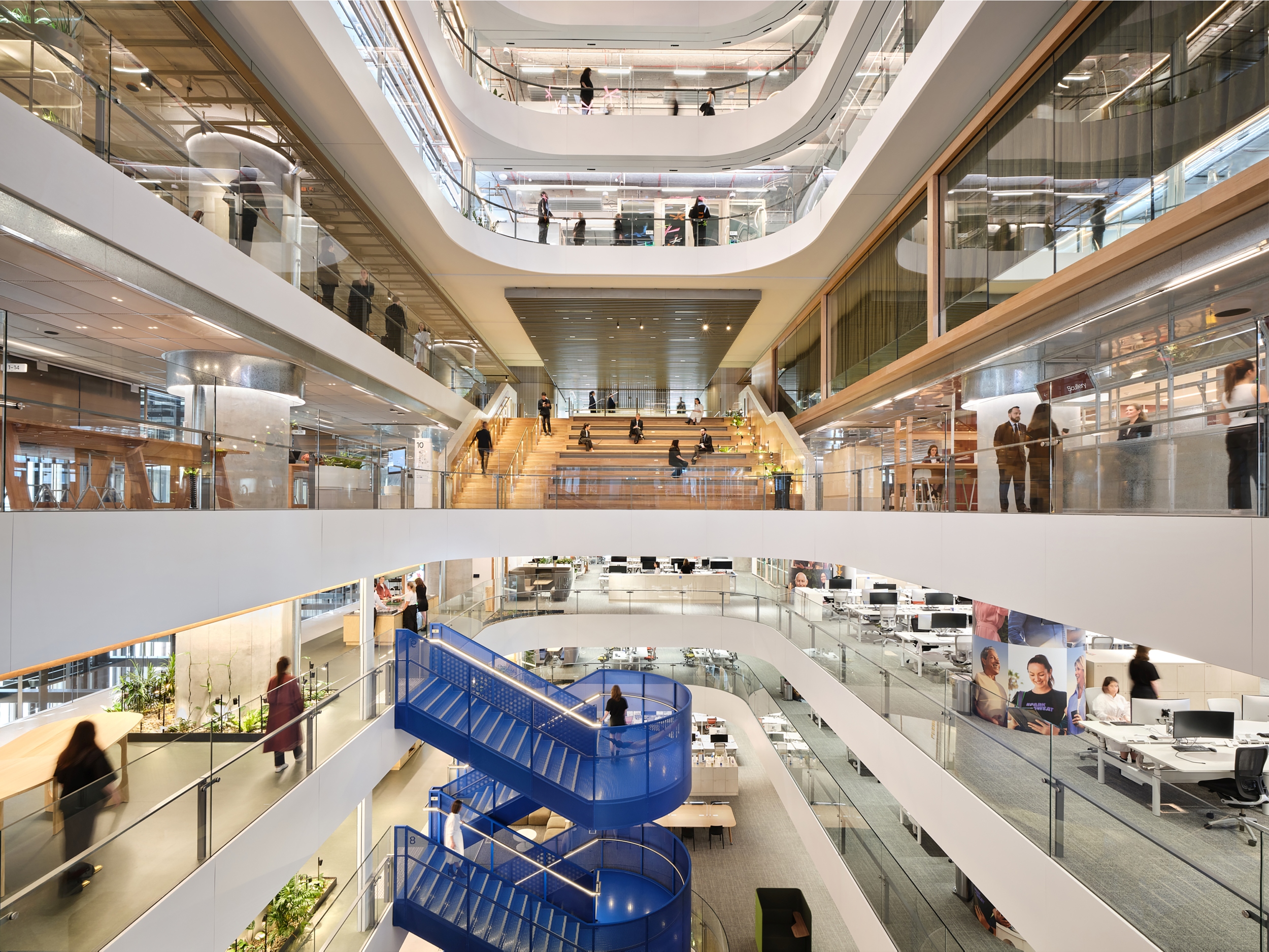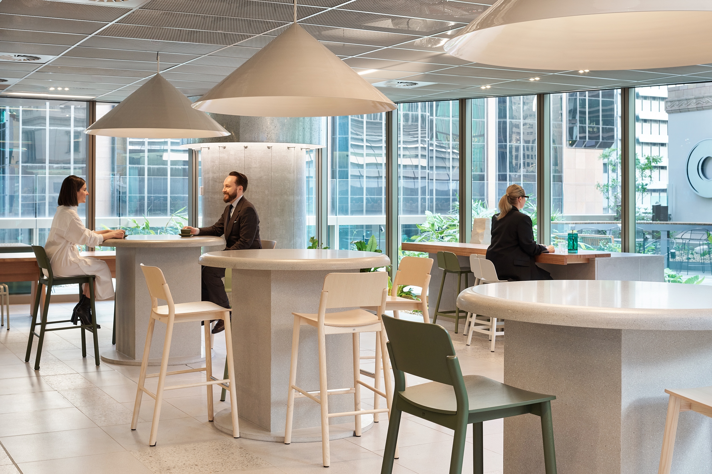 Macquarie’s global headquarters in Sydney’s Martin Place is a dynamic, light-filled workplace designed for community, collaboration, and sustainability. Featuring advanced technology, wellbeing facilities, and amenities such as an art gallery and hospitality floor, it offers an adaptable, connected and collaborative environment that enhances the experience of both employees and guests.