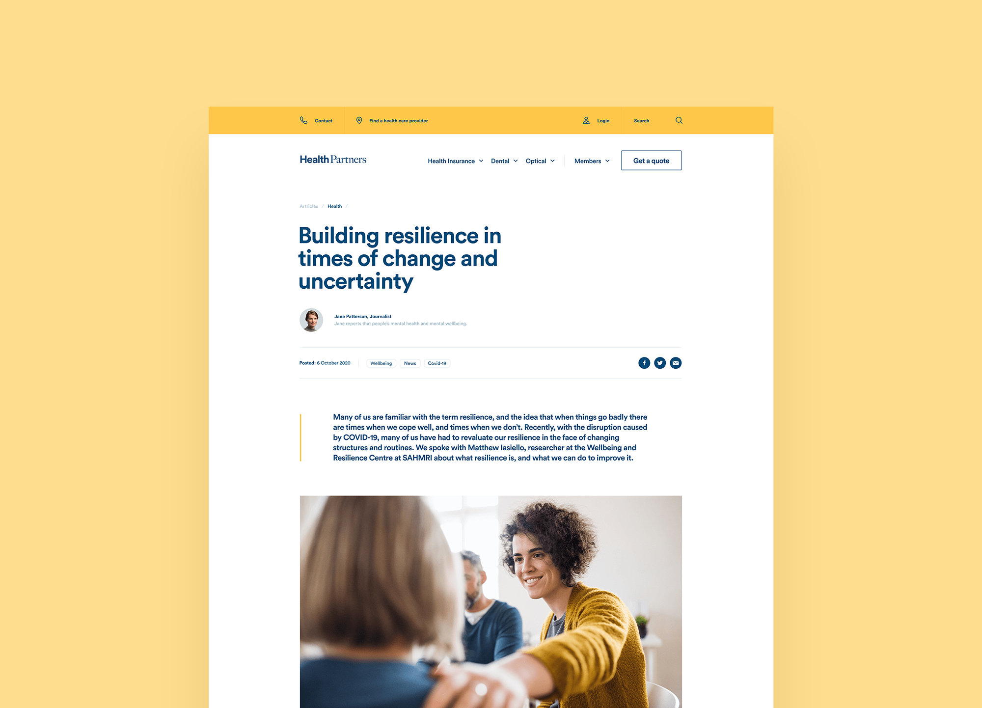With a renewed focus on their digital member experience, we were called in to collaborate with the Health Partners team to redesign and redevelop their marketing website.