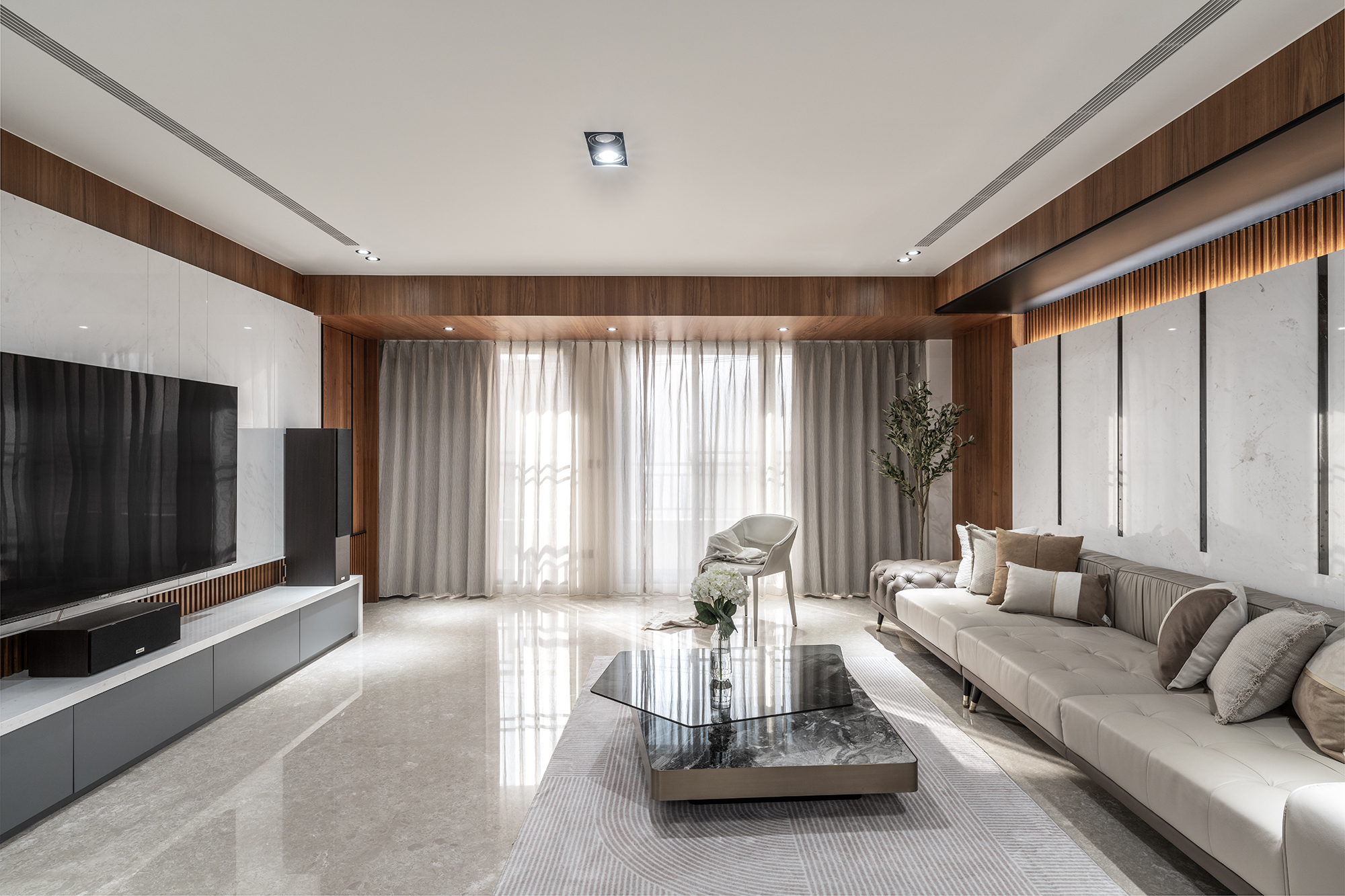 Environmental sustainability was a key priority in this project. The team selected eco-certified paints and tiles, along with water-saving sanitary fixtures, effectively reducing pollution and resource waste while minimising the home’s ecological footprint. In addition, high-durability stone materials were carefully chosen to ensure longevity and reduce the need for future replacement. The design upholds a sustainable ethos throughout, resulting in a contemporary residence that is both enduring and environmentally responsible.