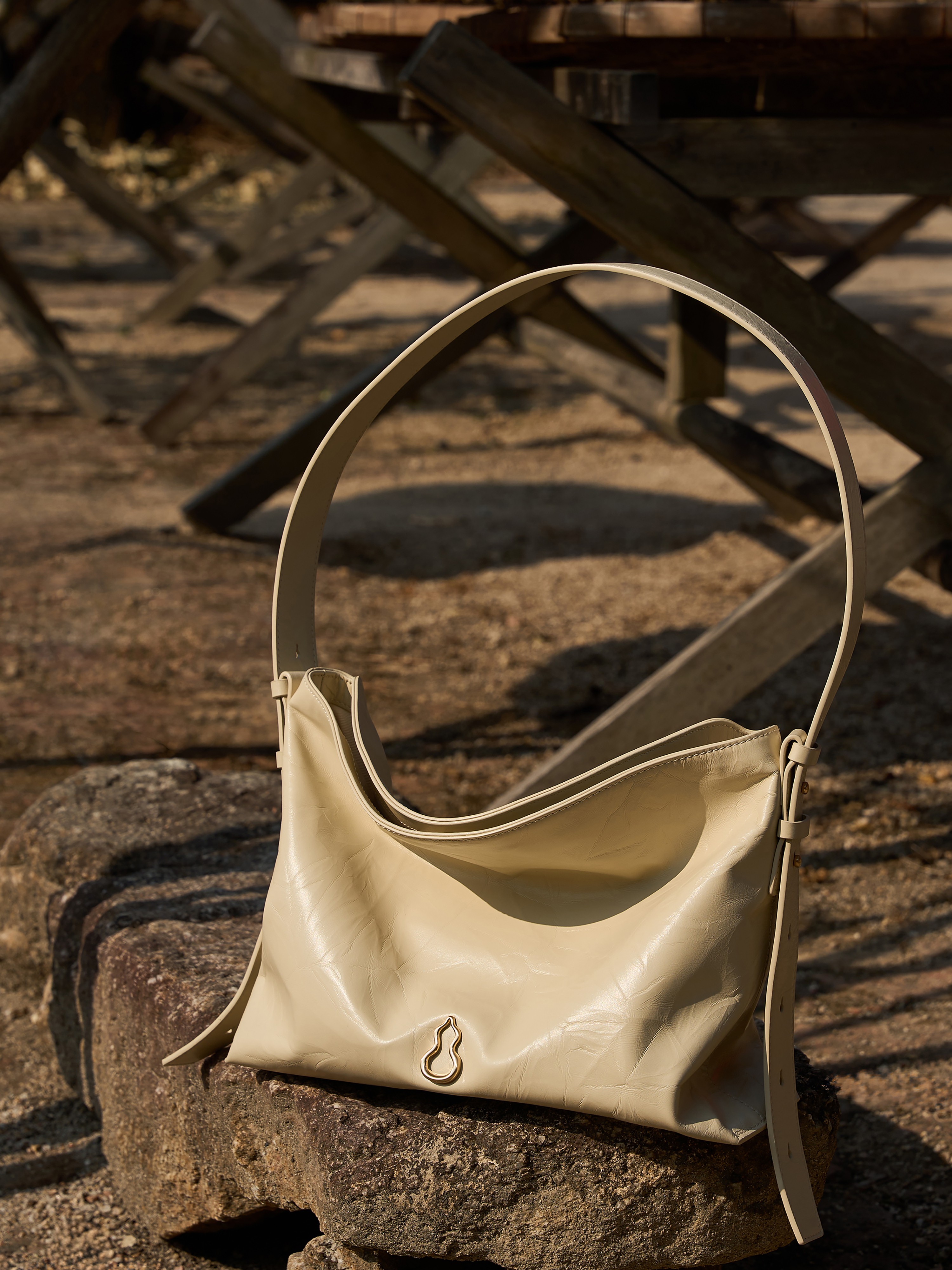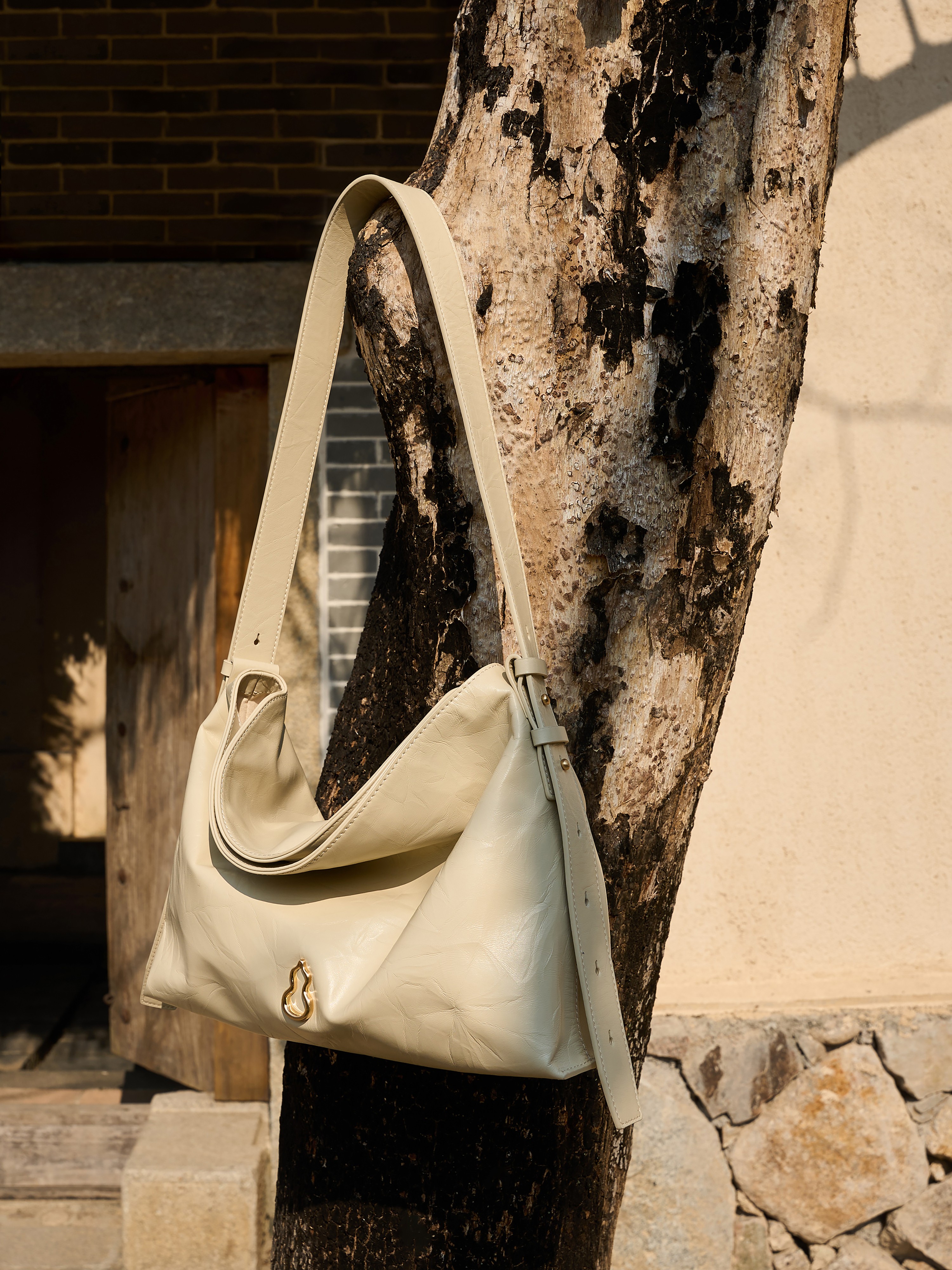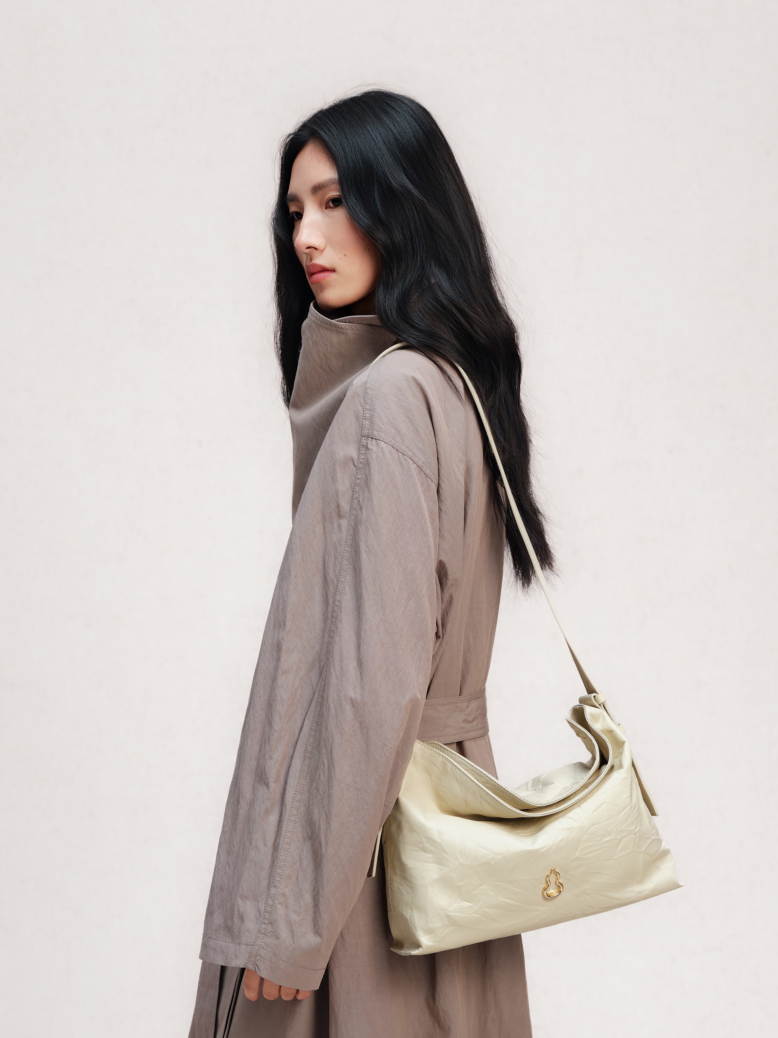 In today’s world, consumers are shifting from seeking mere accumulation of possessions to emotional resonance. Inspired by the softness and skin-friendliness of silk tops described in Tang-dynasty poem and embracing the Taoist philosophy of “great beauty lies beyond form”, the brand reinterprets Eastern aesthetics in a modern language. By giving the distinctive textures of Dong Cloth to hand-crumpled leather, accented with symbolic gourd-shaped metal and styled in a lightweight and practical HOBO silhouette, the design achieves a harmonious fusion of cultural heritage, artistic expression, and multi-scenario applicability.