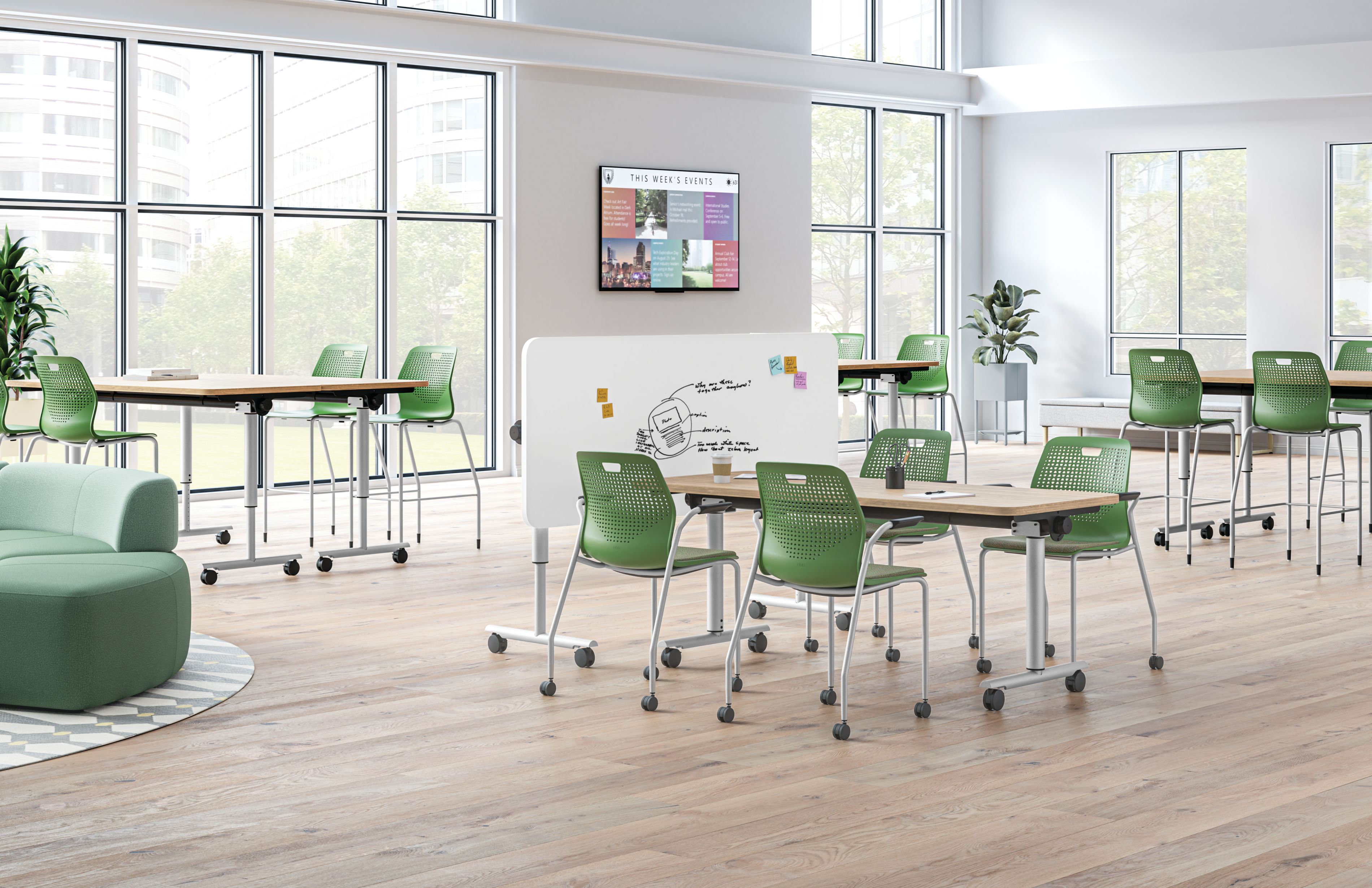 HON is committed to crafting durable products that are built to withstand high-traffic environments like classrooms, cafeterias, and common spaces. Etch is highly-durable and reduces the need for frequent furniture replacement subsequently minimizing waste over time. The Etch chair’s range of mobility and adaptability helps schools avoid overall product consumption by eliminating the need to purchase multiple types of chairs. Furthermore, HON is dedicated to minimizing the company’s carbon footprint and product waste. All HON products are manufactured in the United States, reducing the company’s transportation emissions and overall carbon footprint. The company has been recognized for their sustainability efforts by BIFMA, with Etch and other HON products having a Level 2 Certification. This is exemplified through Etch’s packaging, which utilizes recyclable packaging options rather than single-use styrofoam.