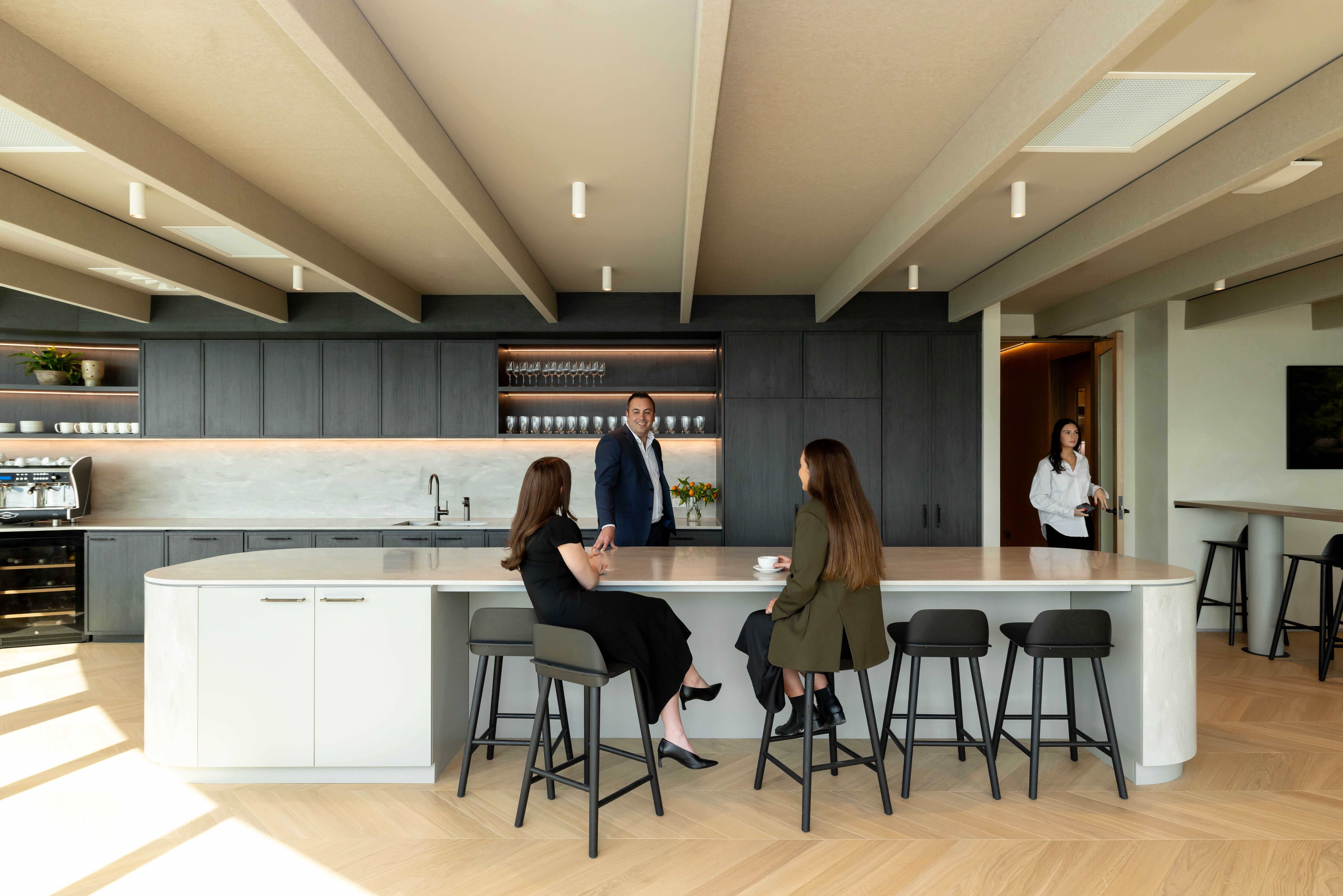 A significant challenge lay in creating optimum productivity for partners and practice groups within a modern workplace - without designated offices. This was achieved through a Partners-designated lounge that provides space for Partners to come together, dine and talk across disciplines. This space is part of the strategy to ensure Partners are supported and enabled to achieve the outputs required, alongside the carefully considered open-plan workspace and day offices which Partners use and free up as needed. This approach ensures that the investment into a refreshed workplace would be a beacon for attracting talent, while being fit-for-purpose for many years to come.