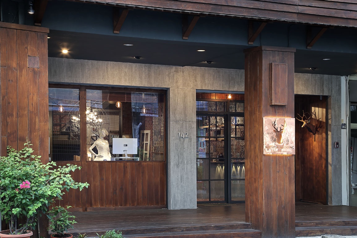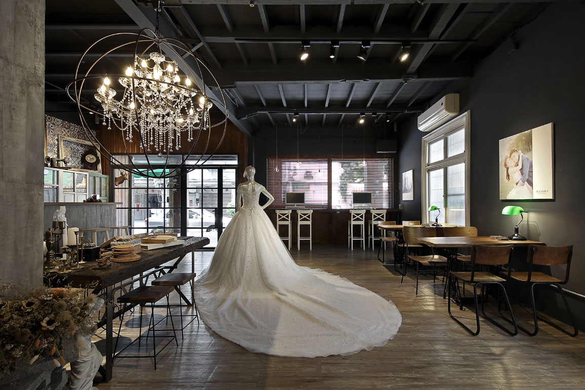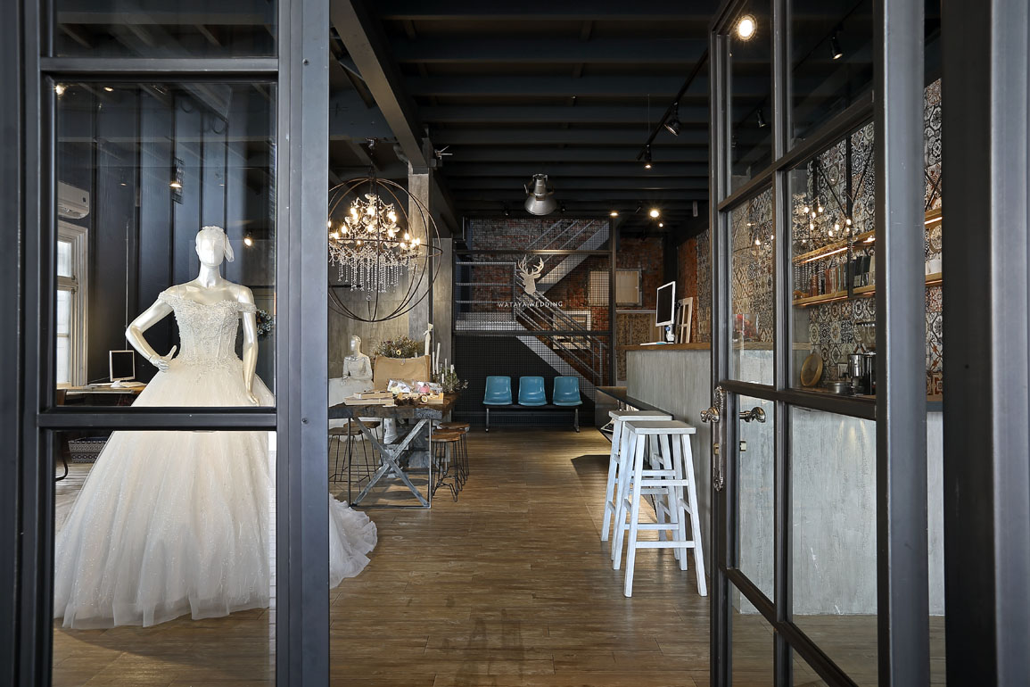 Inspired by the warm, wooden aesthetic of traditional Japanese architecture, an old house has been beautifully transformed into a bridal studio. Amid the hum of traffic and the glow of neon lights, it exudes a quiet, understated charm. Vintage-inspired interior design encourages the incorporation of wood grains, retro floral tiles, vintage doors, and red-brick walls, giving spaces a curated and lived-in feel. Such design evokes nostalgia, transporting us to another time and place. Within this space, every couple can revisit their earliest memories together, reminiscing about how they met and the milestones they’ve shared.