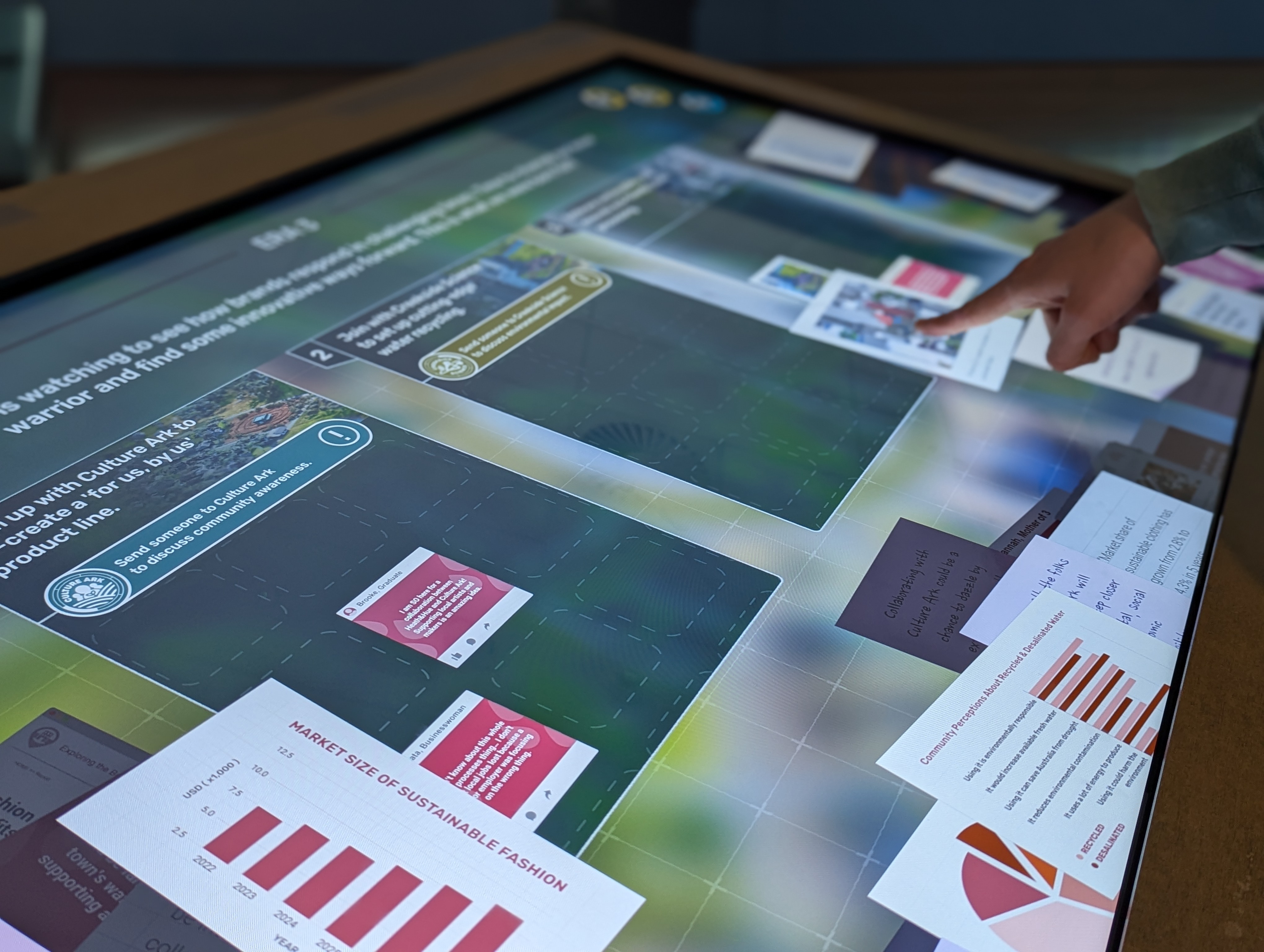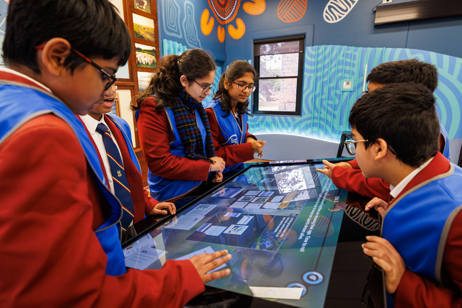 Here, technology acts not as spectacle, but as a scaffold for collaboration, agency, and critical thinking. Multi-touch interactive tables make complex information tactile and accessible, a large-scale central LED supports shared moments of reflection and meaning making, and a themed environment - enriched by Indigenous artwork and site-specific design - grounds the experience in place.