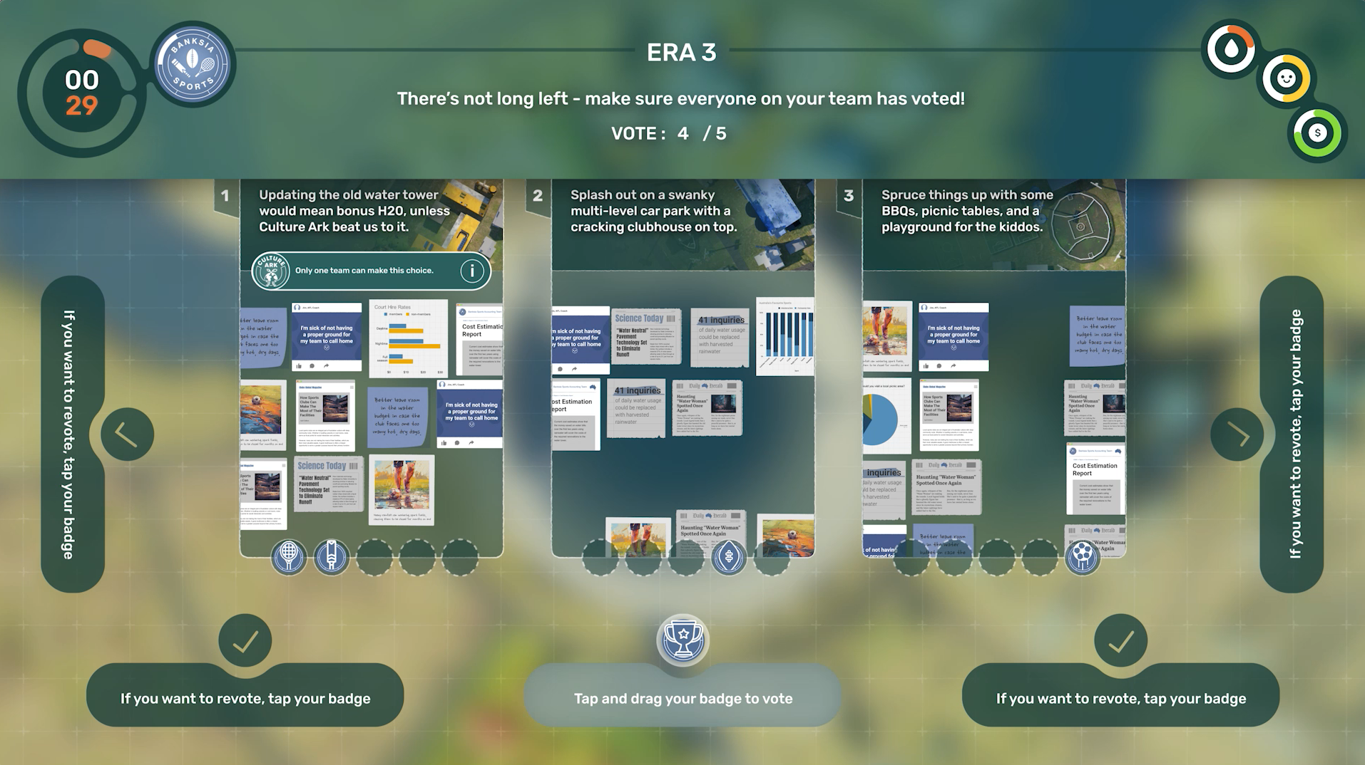 Upon arrival, visitors are split into six community groups, each representing a different perspective within the town. Each round, these groups are given different water-related scenarios that they will need to respond to as their town grows, all while managing the economic, environmental and emotional wellbeing of their town.