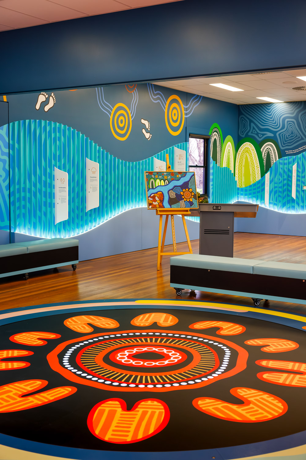 This program is cross-curriculum aligned, extending beyond its original Geography Years 7–8 audience to engage students across English, Humanities, and Science. Its innovative pedagogy combines digital interactivity with educator facilitation, creating a flexible design that resonates with diverse learners and communities. By integrating Indigenous artwork and cultural storytelling into spatial design, the experience connects students to the land’s history, making sustainability personal and relevant.