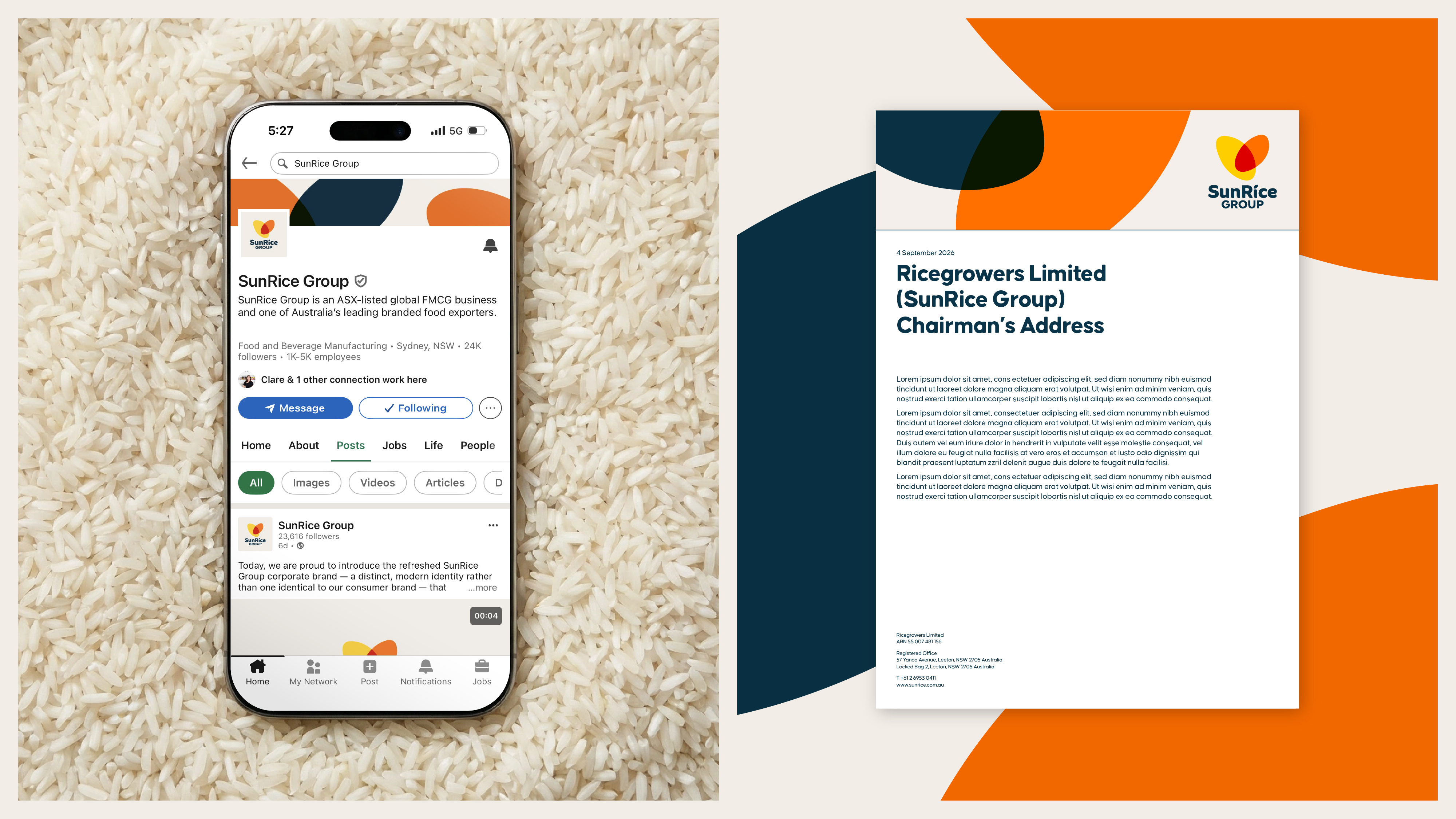 The new corporate identity has significantly improved communication clarity across the SunRice Group. It allows leadership to articulate strategy, purpose and ambition within a unified visual language that is instantly recognisable and globally relevant.