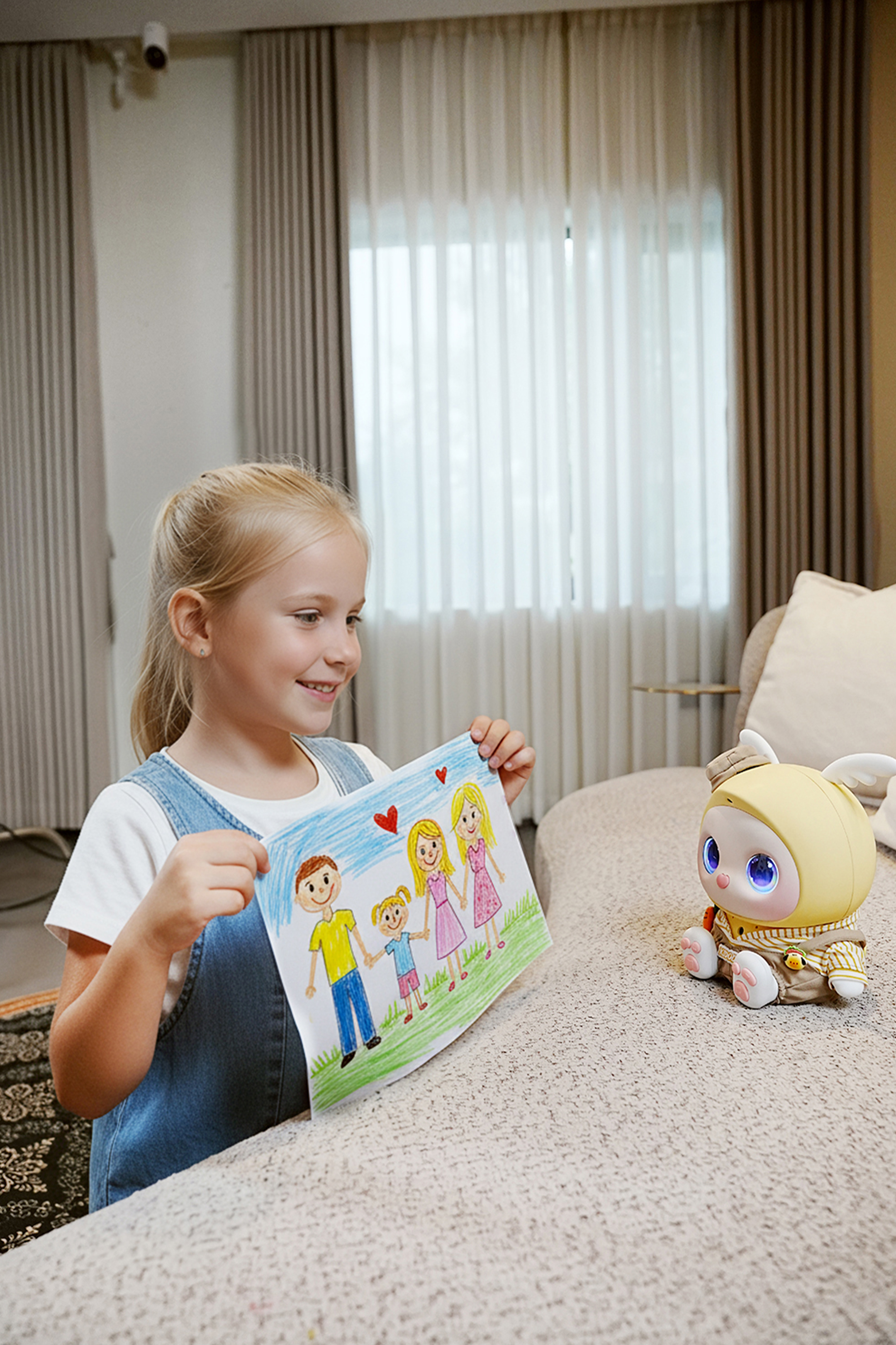 Its design features soft, rounded shapes made with food-grade silicone and an interchangeable "wearable system," creating a warm, friendly, and lifelike emotional experience. Kidodo uses an end-to-end real-time multimodal model, enabling high-precision visual recognition and natural speech interaction. It supports 23 languages, including English, Chinese, Japanese, and Spanish, and can recognize and explain picture books, magazines, doodles, and real-world objects.