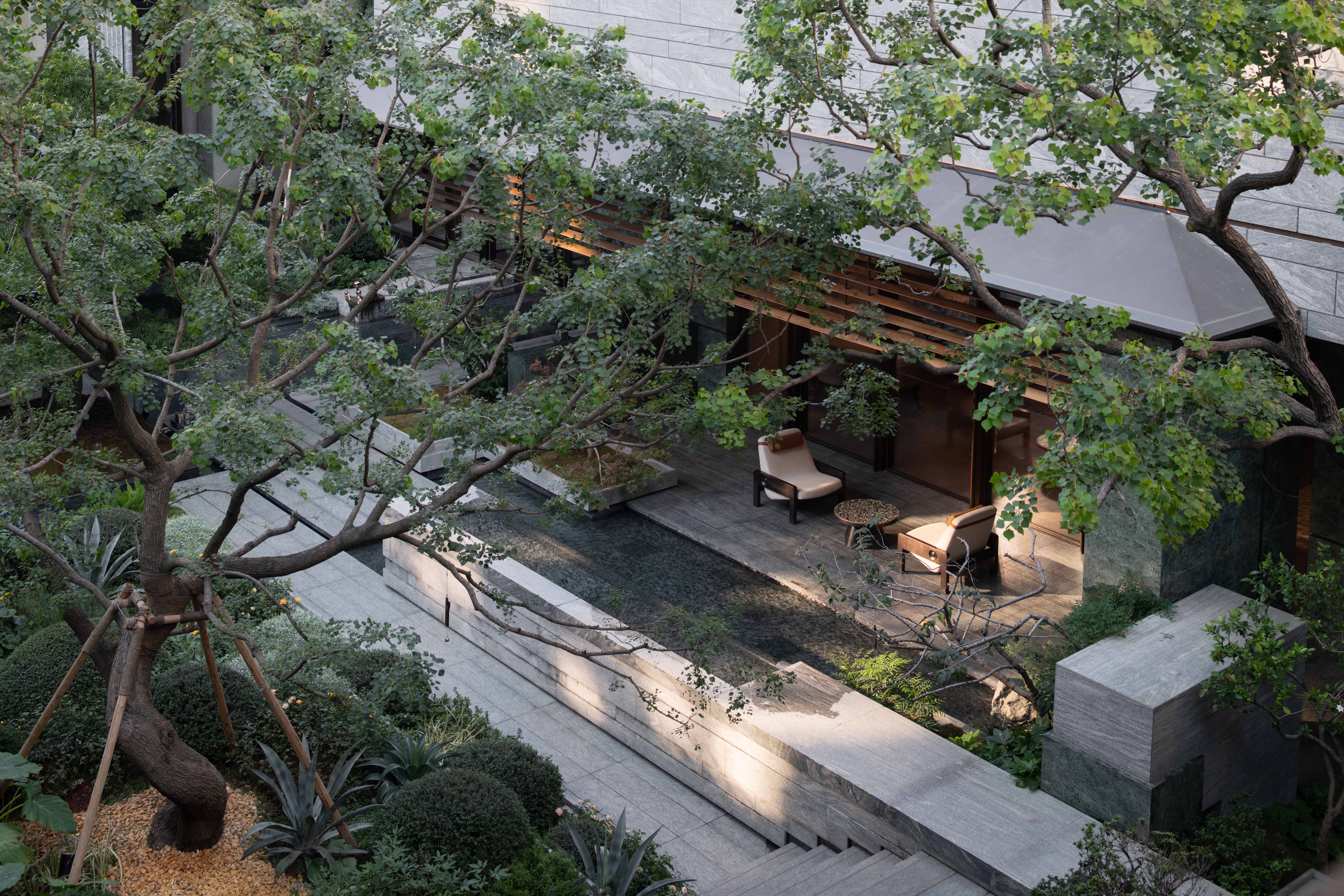 2. Sunken Courtyard: This space pays homage to Huanxiu Villa, a masterpiece among traditional Suzhou Classical Gardens. This garden creates rich landscape layers within a limited spatial scope, embodying the spatial aesthetic principle of “seeing the grand in the small”. The pathway leading to the sunken courtyard features alternating light and shadow, which replicates the rhythmic charm of “views changing with each step” unique to Suzhou Gardens.
