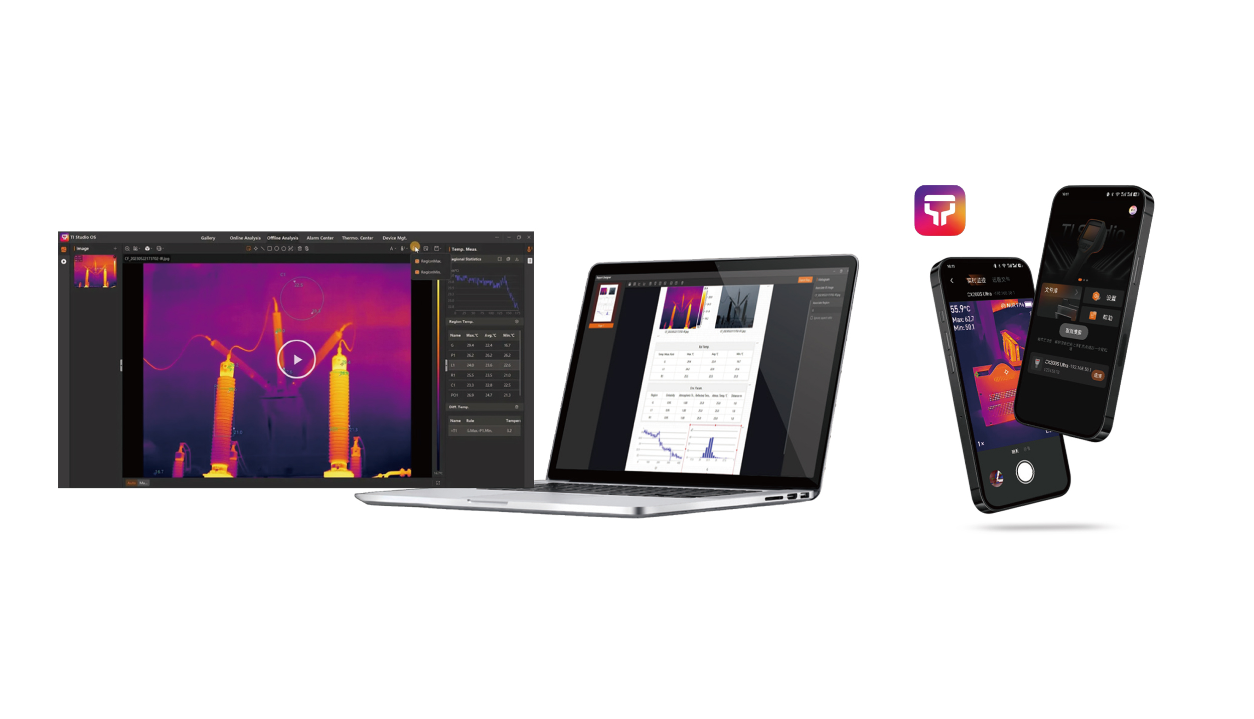 The CX20 series handheld thermal imaging camera is equipped with a large 3.5-inch high-definition screen, which adopts the industry's first widened screen coverage to bring a wider visual experience, and every thermal imaging detail is clearly visible. Equipped with an infrared detector with a resolution of 256×192, it uses AI real-time super-resolution technology to directly increase the resolution to 512×384. The mesh distance can reach as low as 40mK, and even small temperature differences can be captured. More importantly, it is equipped with a fully upgraded laser ranging function to realize the three-dimensional spatial positioning of anomalous points and greatly improve the efficiency of on-site detection. The whole series is equipped with WIFI+UVC image transmission as standard for fast and efficient wireless data transmission. It also integrates a complete software ecosystem, enabling seamless switching between the APP and the PC temperature analysis platform to meet diverse application needs.