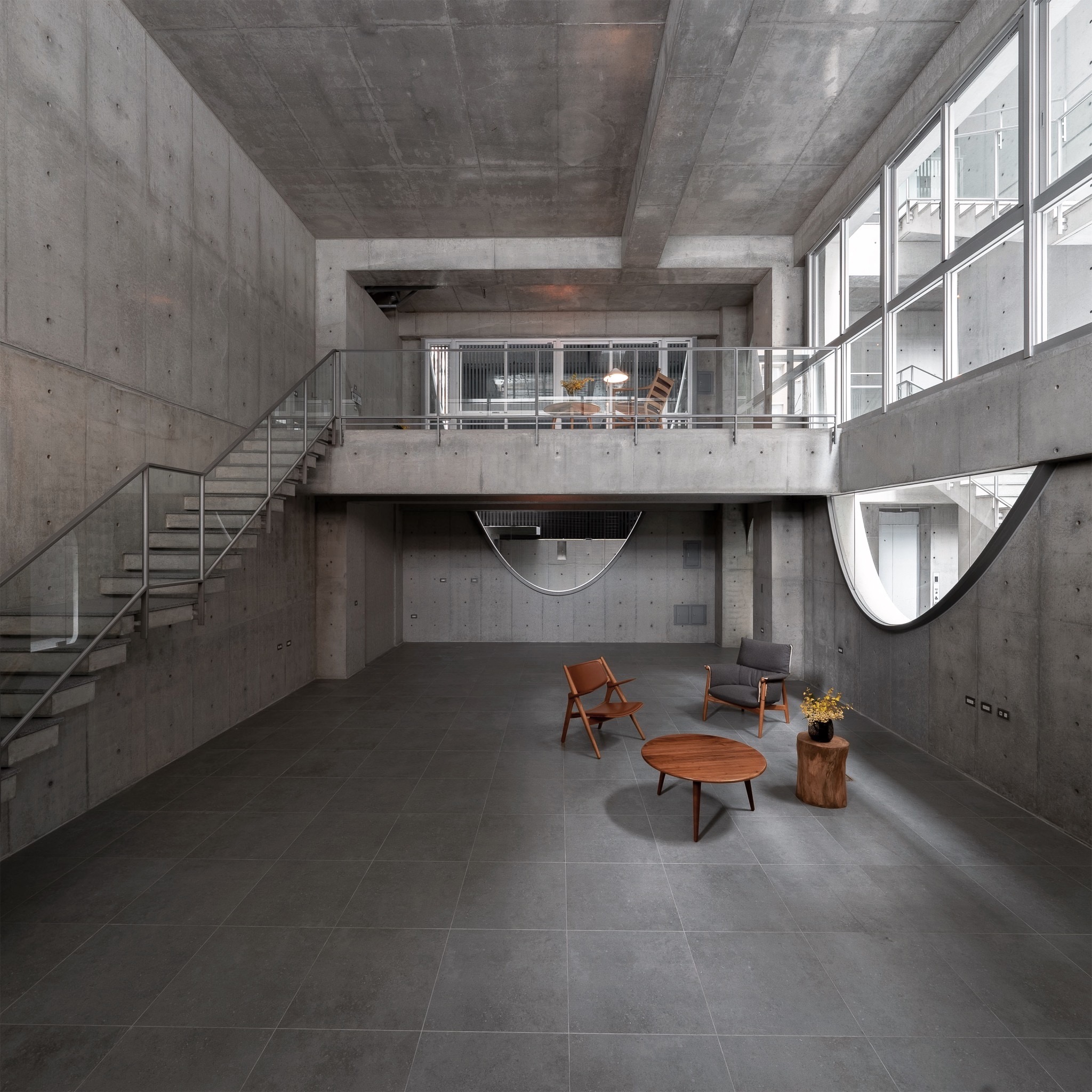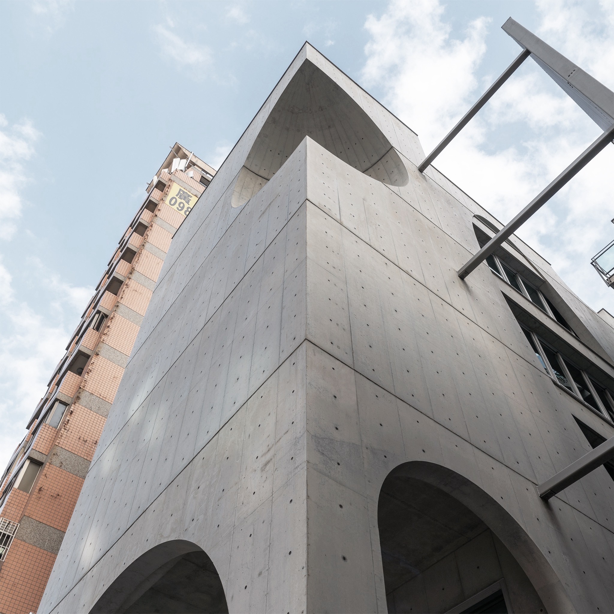 This case is constructed with fair-faced concrete. In terms of design method, the architect used round elements as the architectural technique this time, mainly to balance the rigidity and sharpness brought by the square geometry, and to use smooth elements to reduce the visual impact of this building on people.