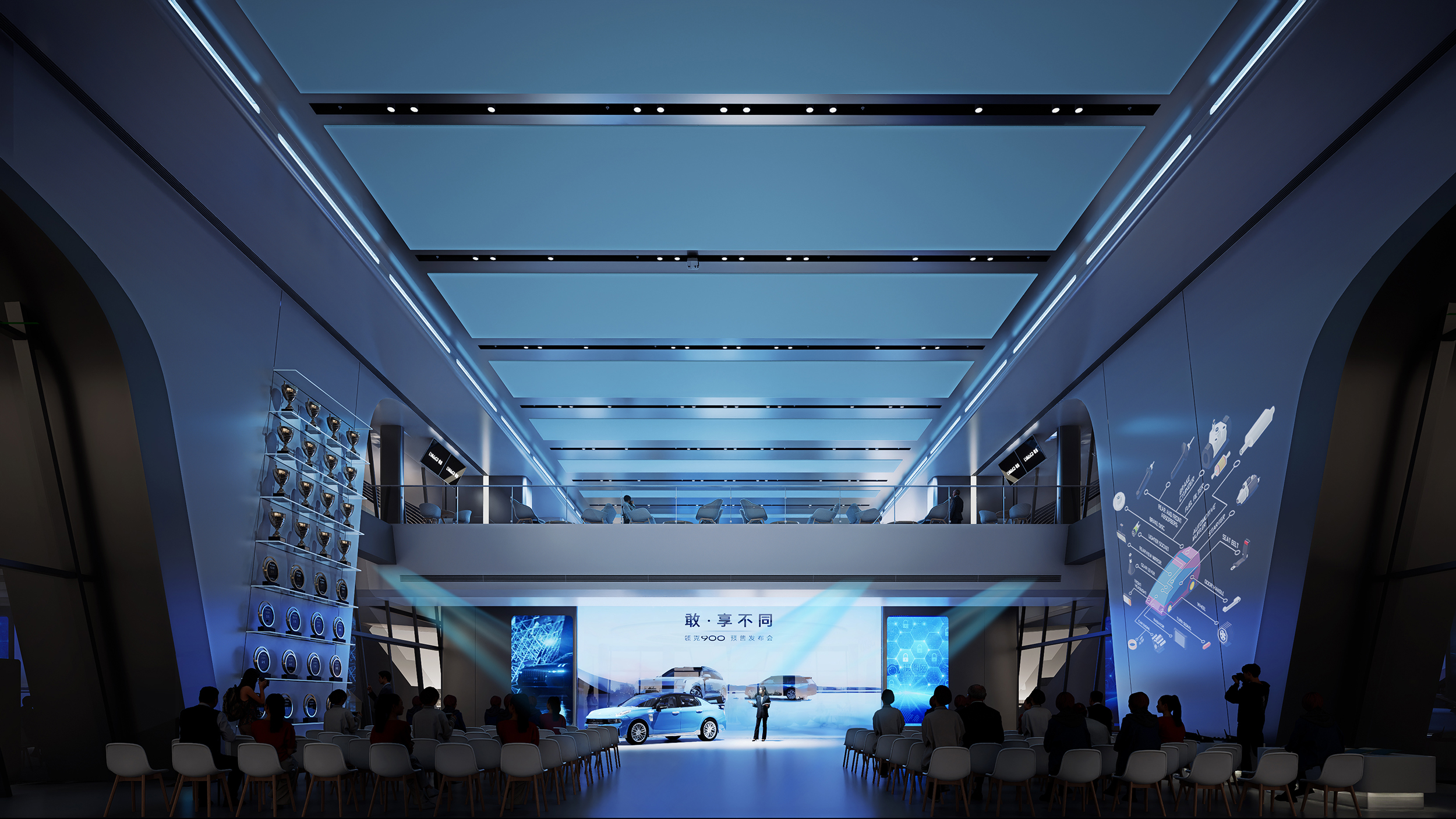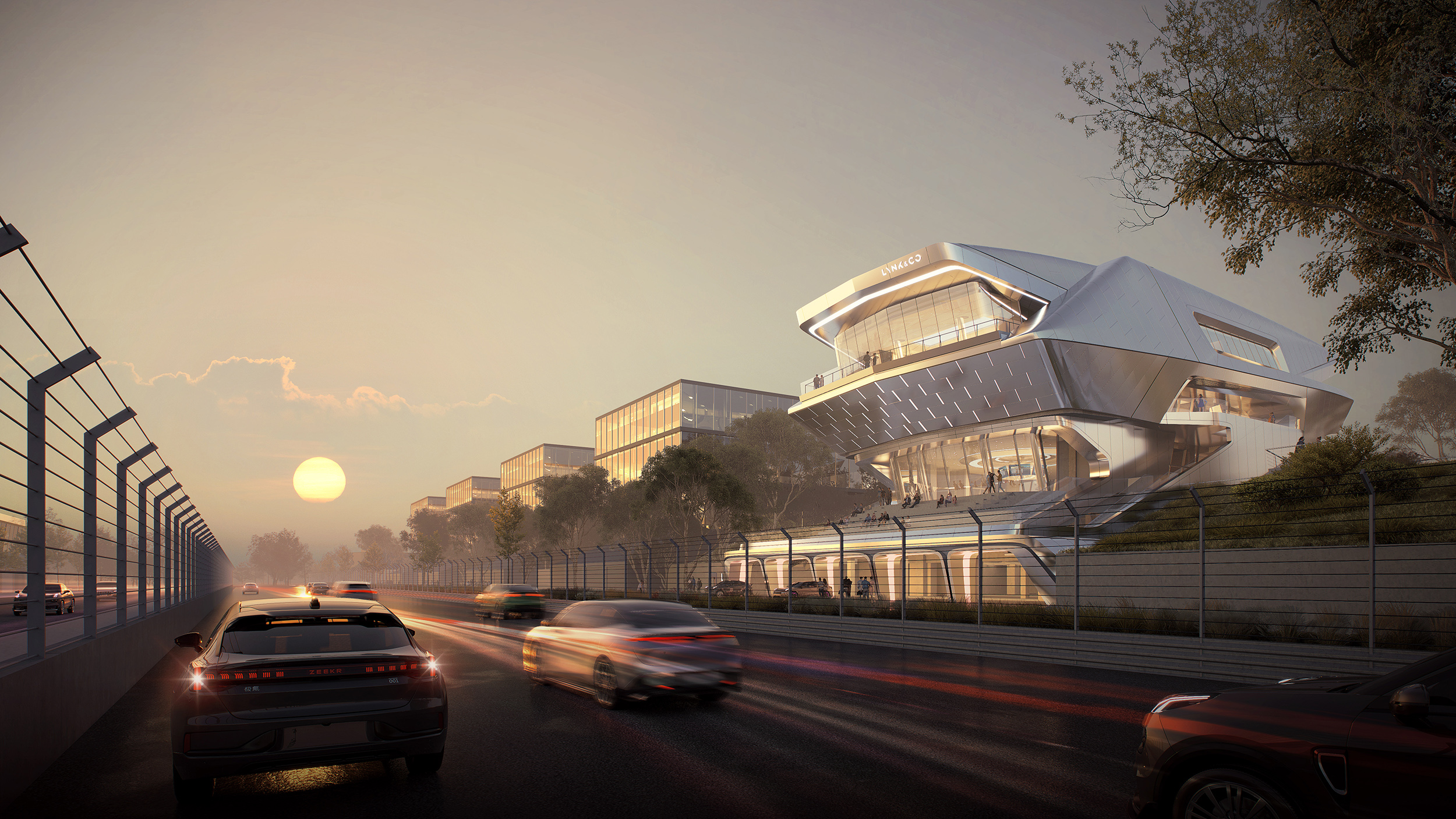 This Center pioneers the fusion of automotive, cultural and social functions under one roof. By abstracting signature LYNK vehicle lines into a muscular architectural language, the design achieves a dynamic and fluid spatial experience seldom seen in motorsports venues. The interactive lighting system enhances this experience—its rhythmic activation synchronized with user movement and event tempo, echoing the electric track experience. Rooftop photovoltaics and an integrated BMS (Building Management System) showcase our commitment to sustainable innovation on and off the track. Internally, modular and reconfigurable components adapt the space to shifting needs—from high-volume exhibitions to focused workshops—providing a flexible and immersive platform for brand engagement. The project responds to the evolving landscape of mobility, where lifestyle, performance, and identity converge.