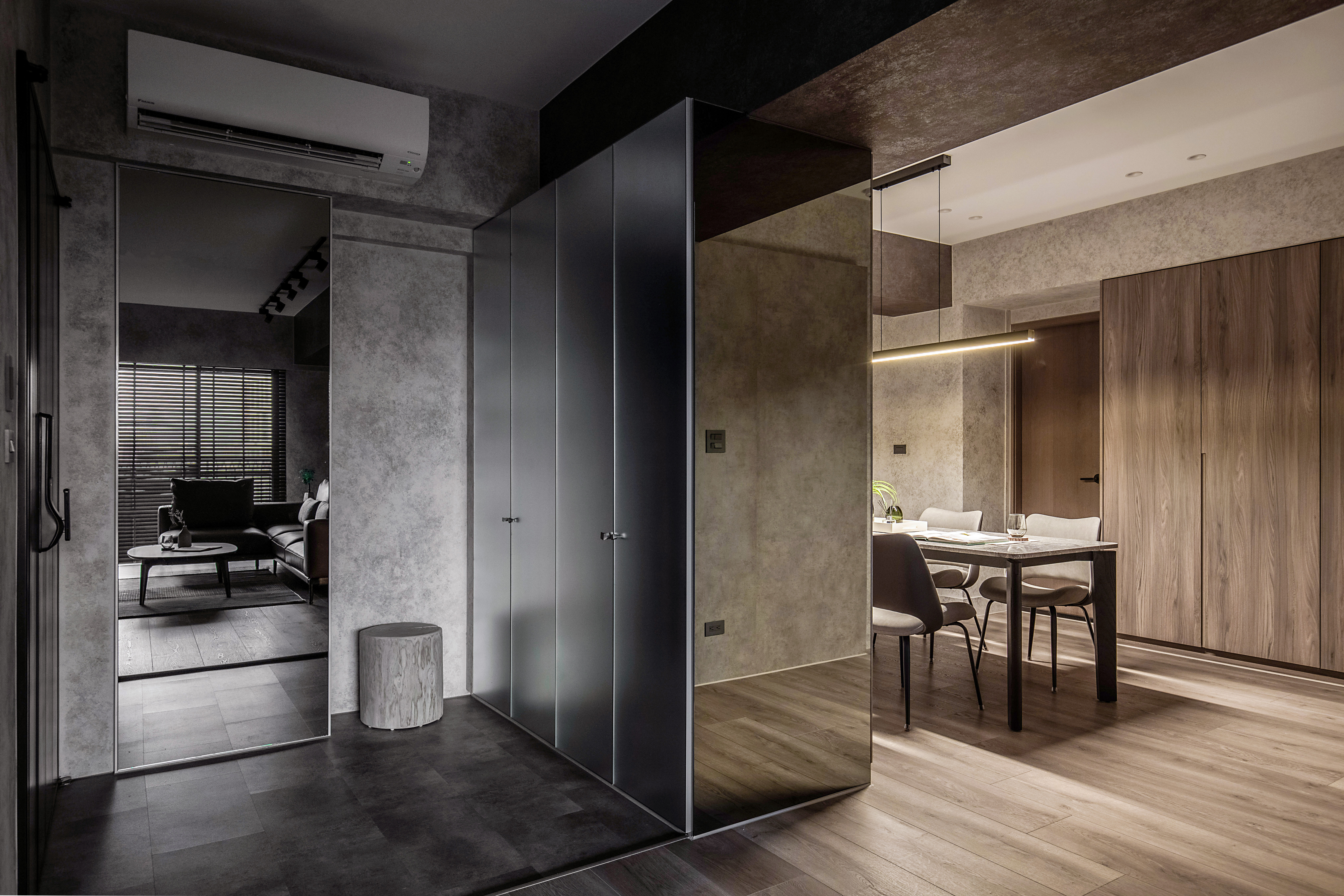 With natural light coming from three sides, the space remains bright even with gray tones. During the day, there's no need for artificial lighting, taking full advantage of Taiwan's long daylight hours, making the home both energy-efficient and comfortable. The large windows also ensure that the space is well-ventilated, allowing residents to enjoy a healthy environment.