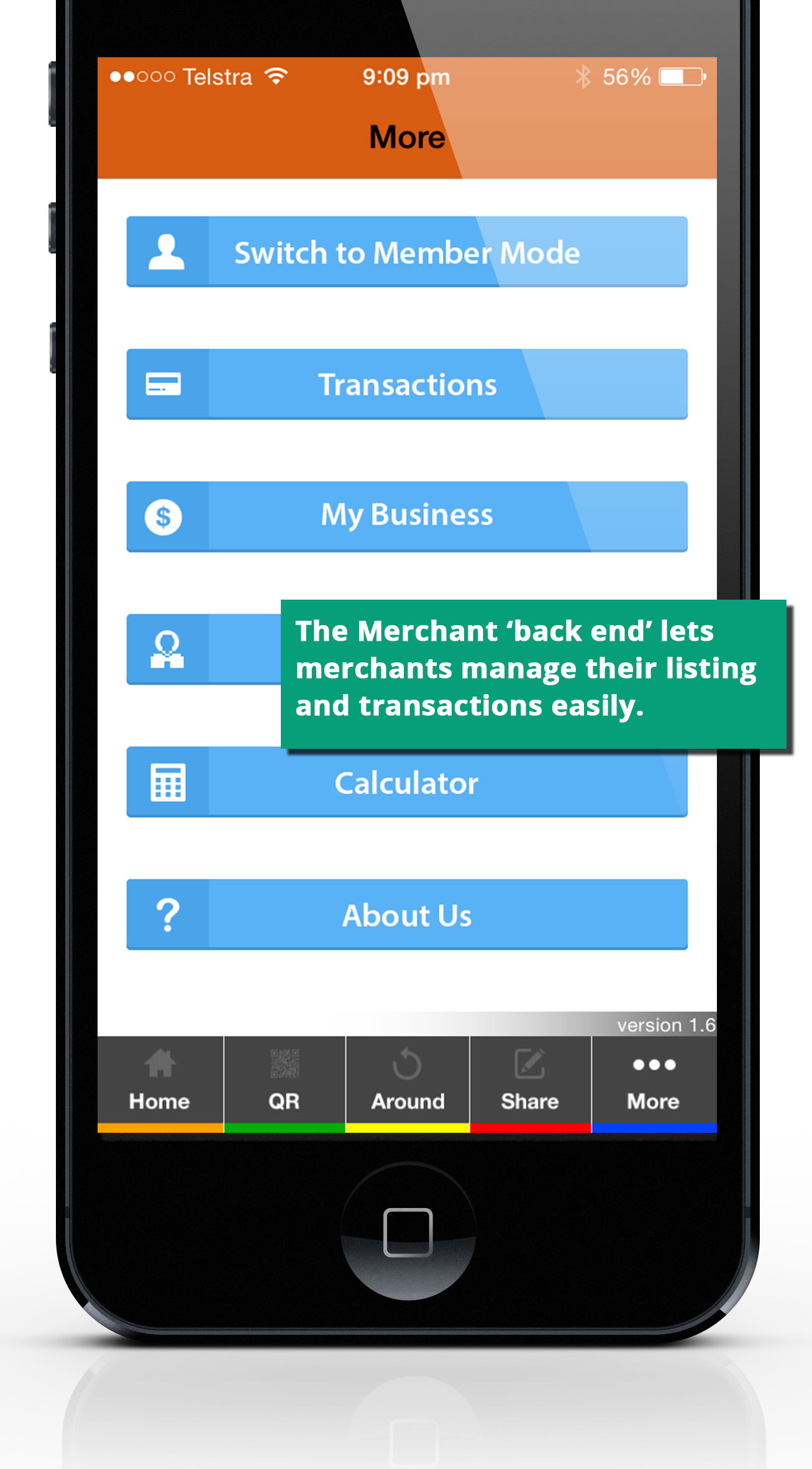 Transactions occurring between Members and Merchants are simple and use QR codes and scanner built in to the App.