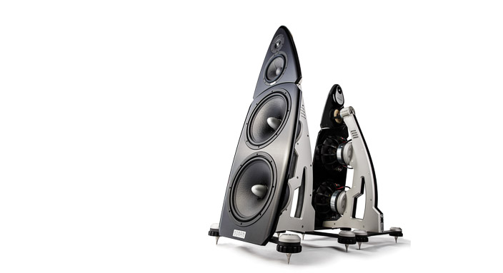 The Kyron Audio Kronos is an extreme-fidelity music reproduction system. Removing the speaker enclosure has allowed for an increase in sound quality and the ability to create a unique and beautiful form that is in itself an artistic expression.