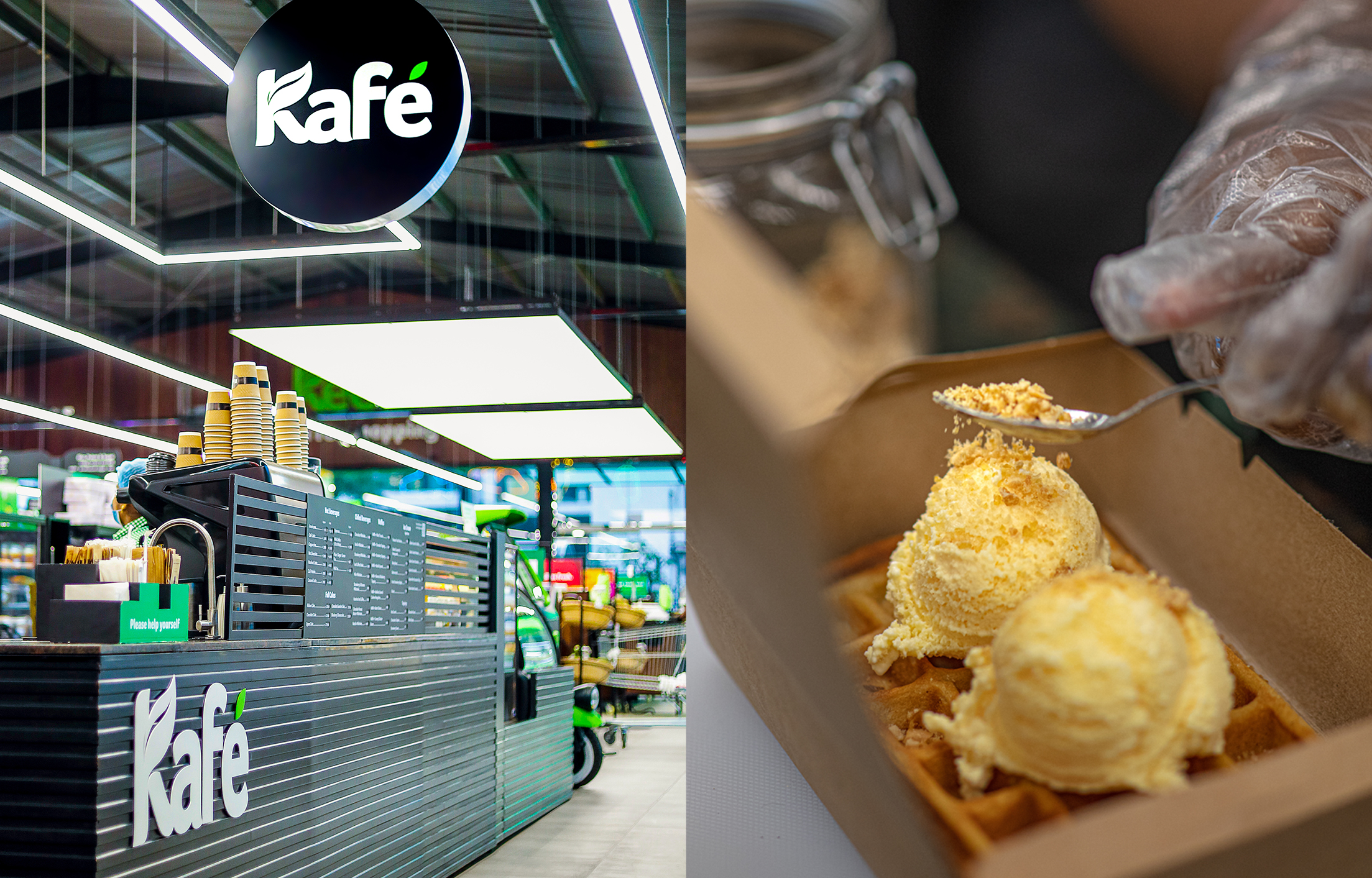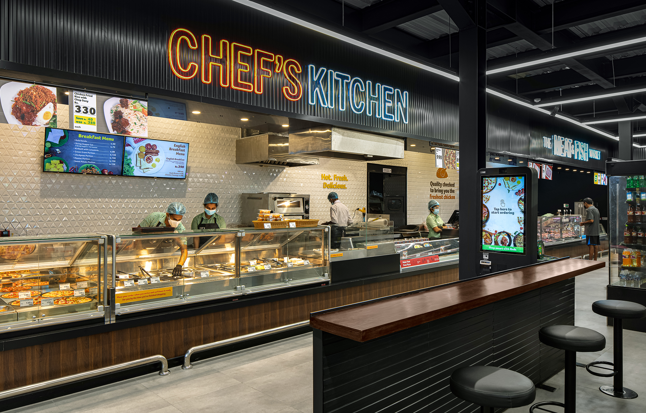 Compared to the core Keells fleet, ‘Iconic’ stores were to have a significantly expanded ready to eat offering, with everything from curries to lasagne, pizza to waffles, fresh juice to ice cream and more, all available in store. Fitting all these features in a tight space was always going to be tricky, but persistence paid off and we eventually landed on a configuration that made sense, thus giving birth to the Keells Kafè.