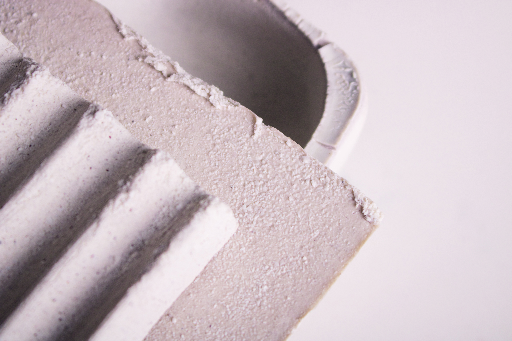 In developing the recycled porcelain material, we use industrial waste. The fragments of porcelain, referred to as breakage, occur in large quantities in the production of porcelain, they are our basic material. But we also want to pay attention to an ecological manufacturing process in the development of our new material and create a pure material so that it does not have to be disposed of at great expense. We think through the entire life cycle of our objects: from material procurement to disposal after use. Thus, our recycled porcelain consists of 100% porcelain shards without the addition of foreign additives and binders. The manufacturing process is particularly ecological, so that production waste is also reused. We take the natural resources that already exist and turn them into something new. This is how the idea came about to use the properties of this material, which can absorb moisture, and thus cool through the natural effect of evaporative cooling.