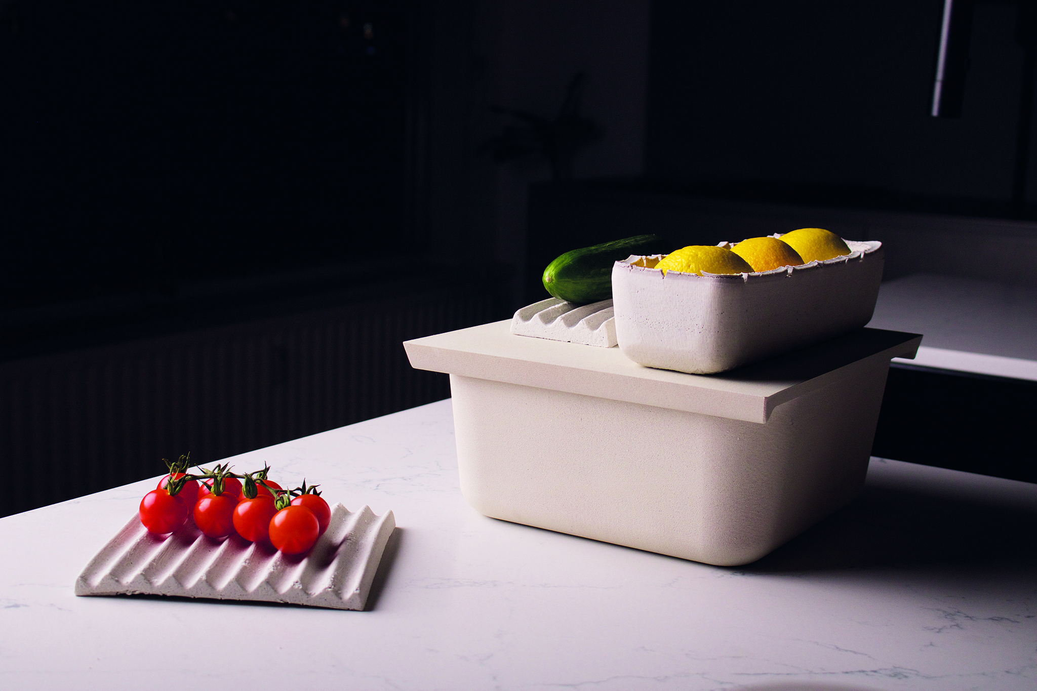 Relics are containers made from recycled porcelain that help fruit and vegetables to last longer. A tray inside the container can decrease the temperature through a natural cooling effect called evaporative cooling. This creates optimal conditions for storing almost all types of fruit and vegetables. The container consists of 100% porcelain waste that was first ground and then sintered together. With this product, waste is reduced and a resource-saving lifestyle is supported.