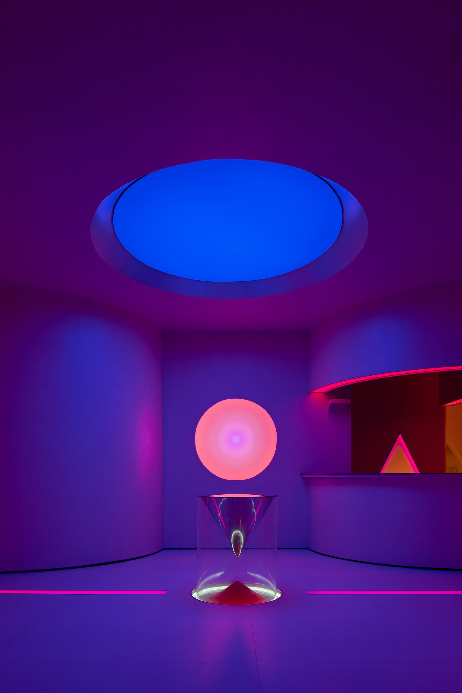 When it comes to the laboratory, specific instruments form the basic impression of daily life. The concrete objects are abstracted and applied to the interior of the space with pure geometric figures. Through the combination of three-dimensional triangles, circles, arcs and conics, the unique symbolic significance of the figures is shown by enlarging, overlapping, interweaving, fusion and rich fluidity and organicity.