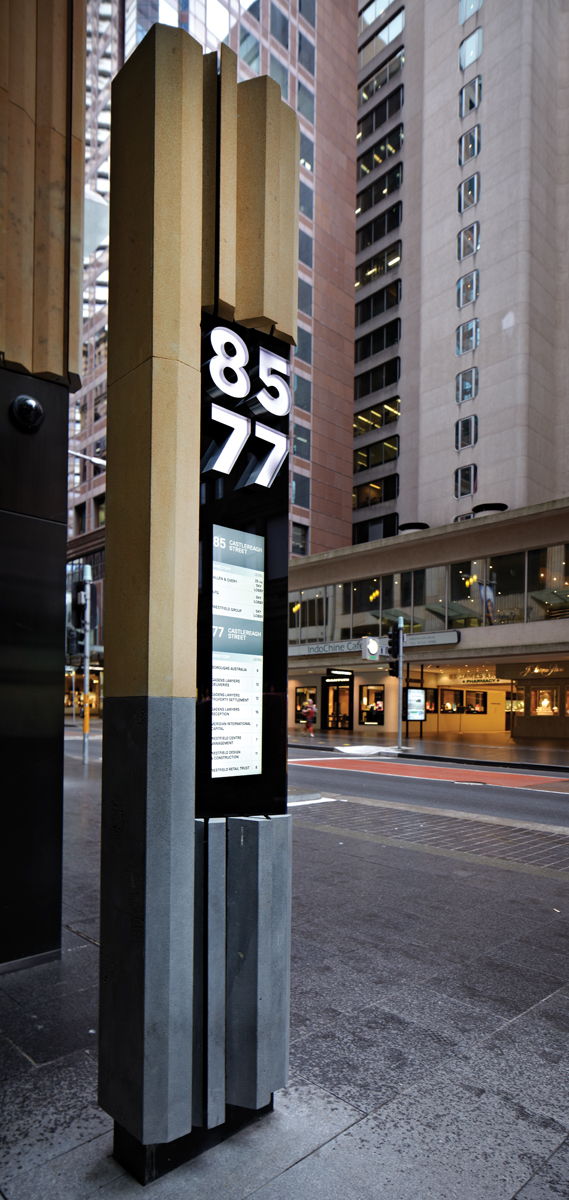 The result is seamlessly integrated and beautifully reductive signage and wayfinding solution for one of Sydney’s premier business addresses.