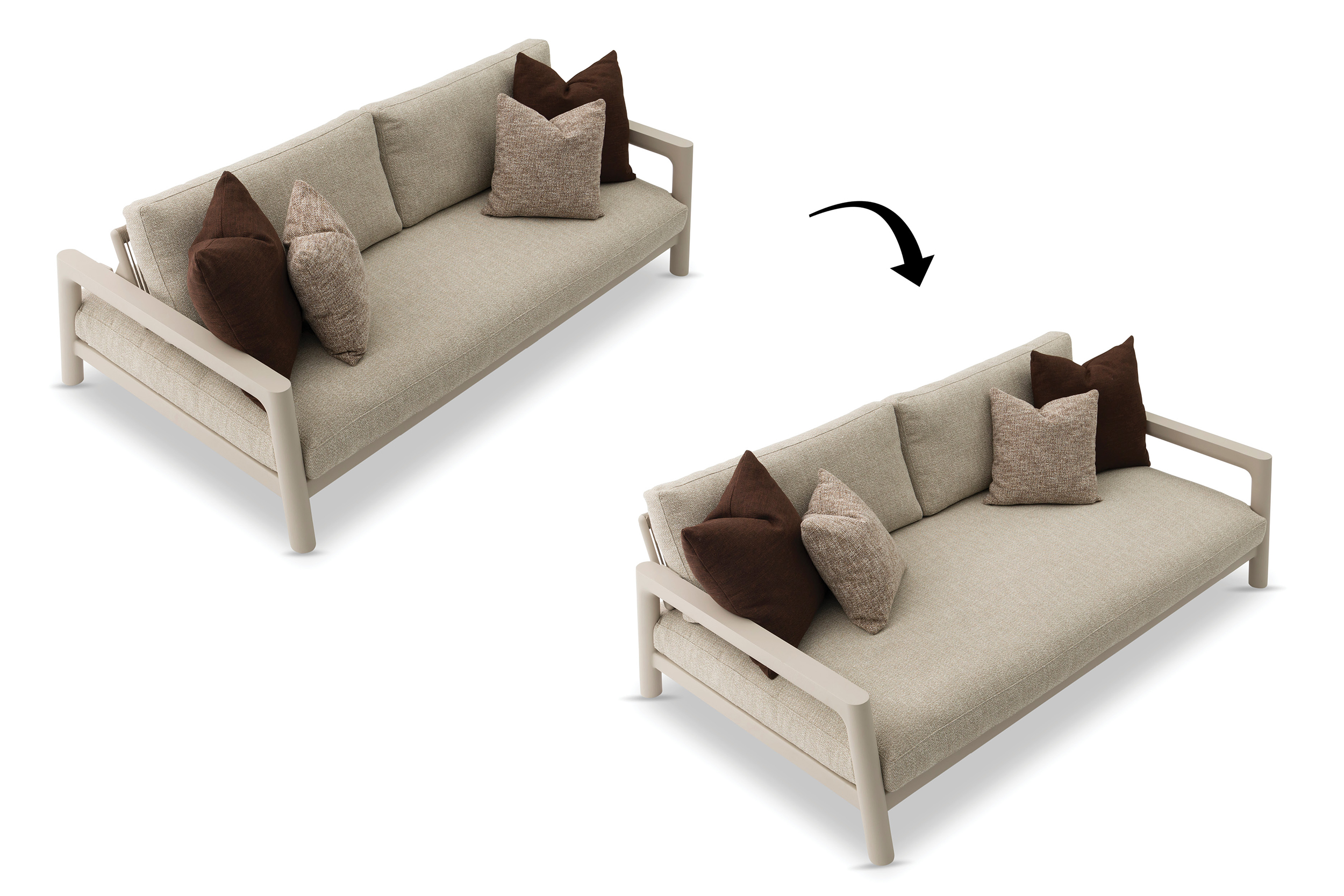 One of the standout features of the Tolo sofa is its ability to transform into a lounge island with just a few simple adjustments. By flipping over the backrest to the back, you can easily rearrange the large backrest cushions, creating a spacious and comfortable seating area. This effortless transformation allows you to enjoy a cozy spot for relaxation, whether you’re spending time with the kids or soaking up the sun. The mechanism of the Tolo sofa has a worldwide patent!