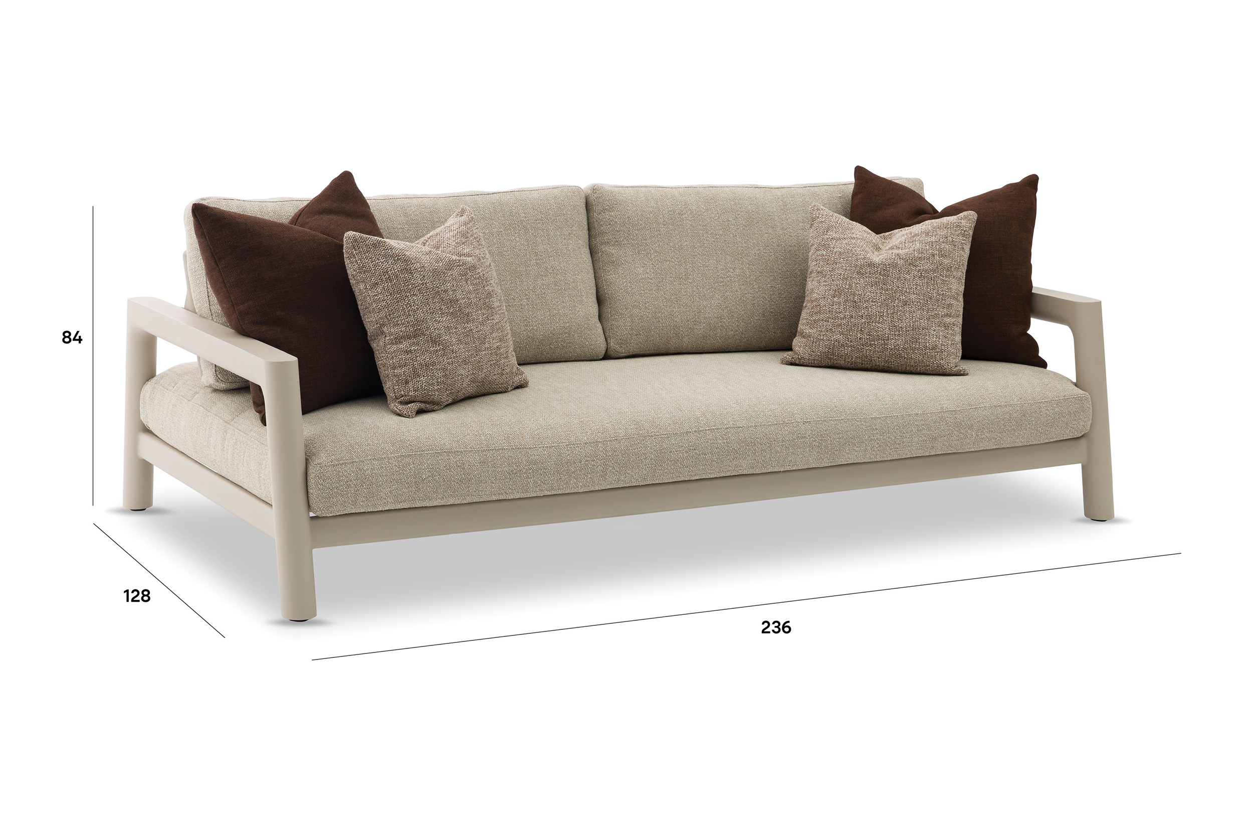 The frame of the Tolo sofa is constructed from high-quality aluminum, which is powder-coated with water-based paint. This eco-friendly finish not only enhances the aesthetic appeal of the sofa but also ensures that it is 100% recyclable, making it a responsible choice for environmentally conscious consumers. The cushions of the Tolo sofa are designed with outdoor durability in mind. They feature UV-resistant fabric that protects against sun damage, ensuring that your sofa maintains its vibrant colors and integrity over time. Additionally, the water-repellent coating on the cushions provides an extra layer of protection, making them ideal for outdoor use in various weather conditions.